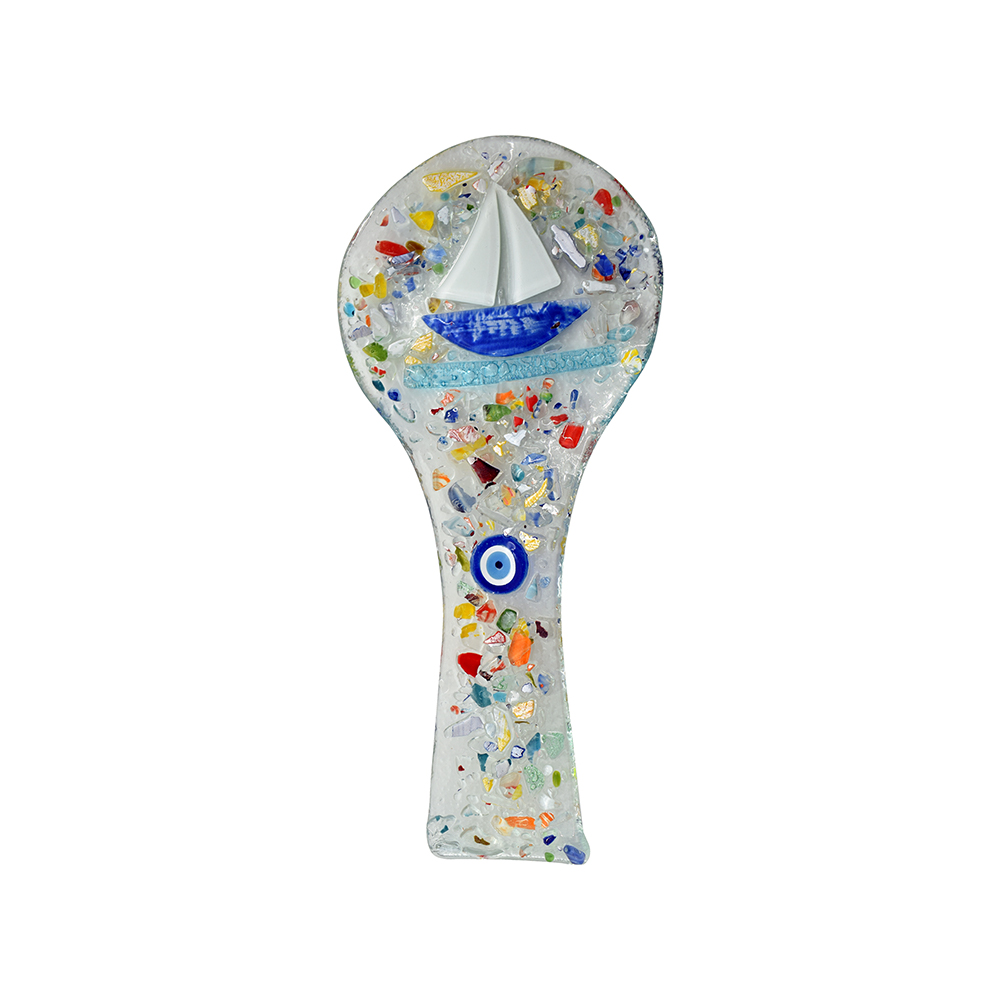 Κουτάλα από Φυσητό Γυαλί με Χρωματιστά Πετραδάκια