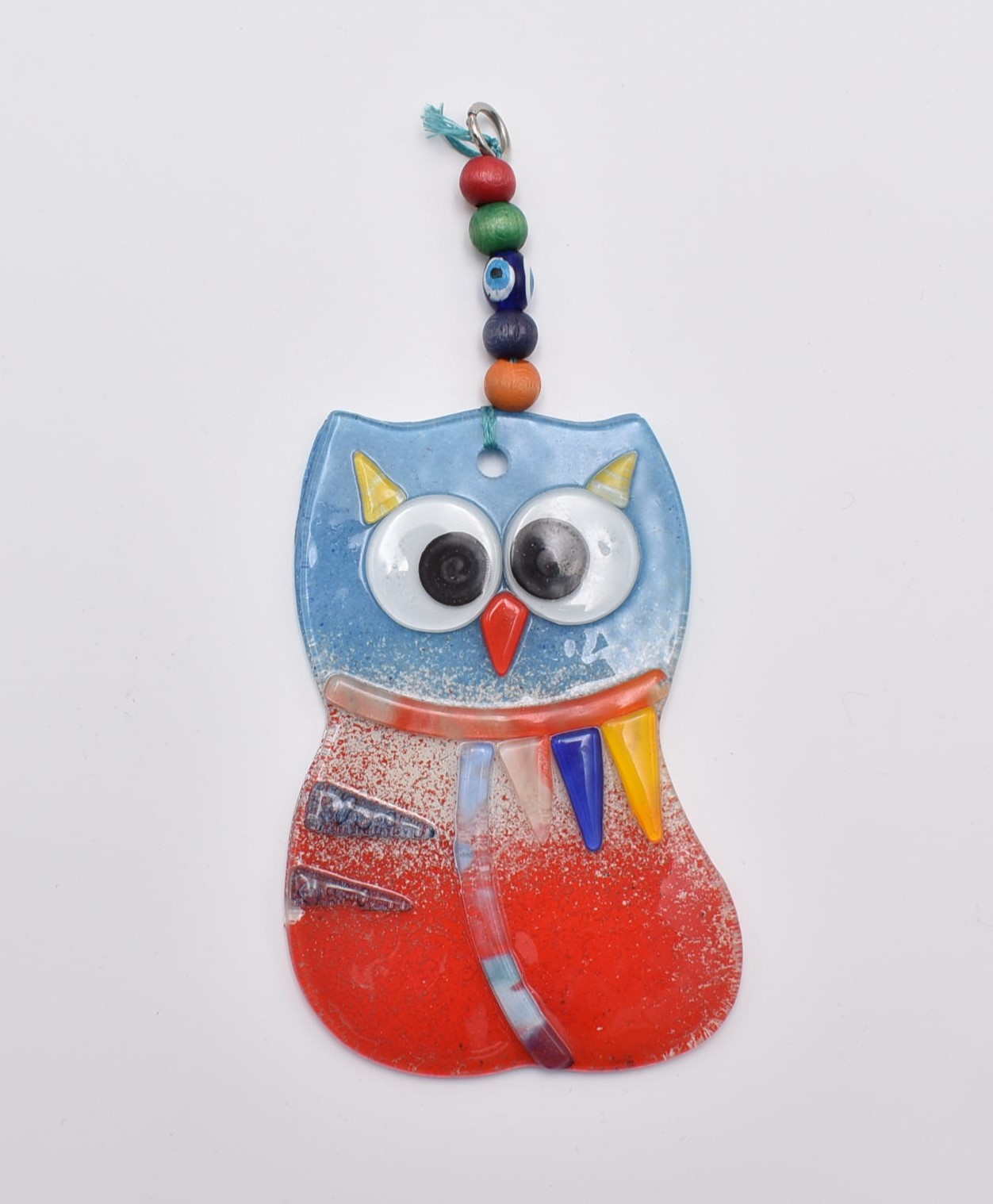 Κρεμαστή Κουκουβάγια Φυσητό 13 cm – Χειροποίητο Διακοσμητικό με Μάτι
