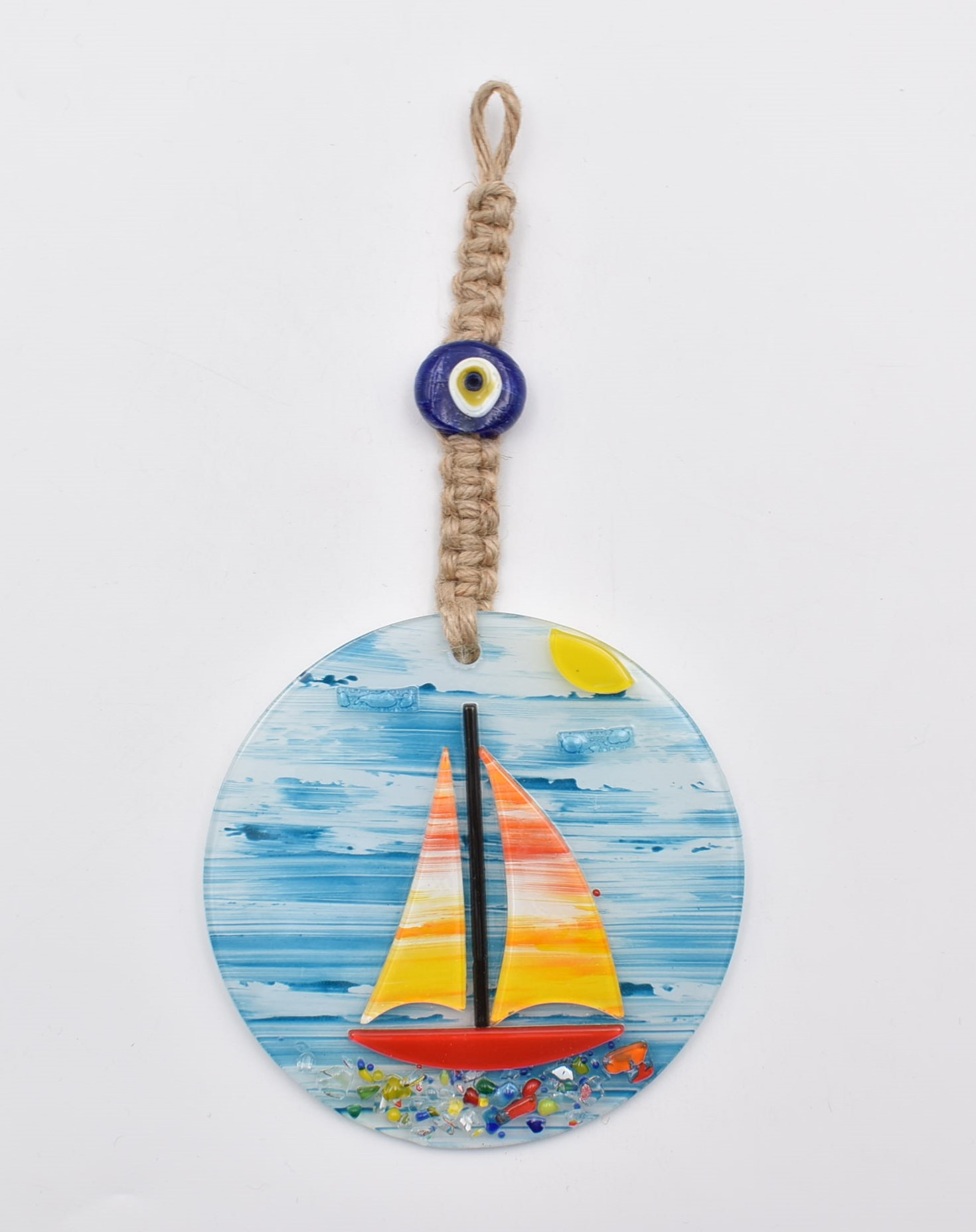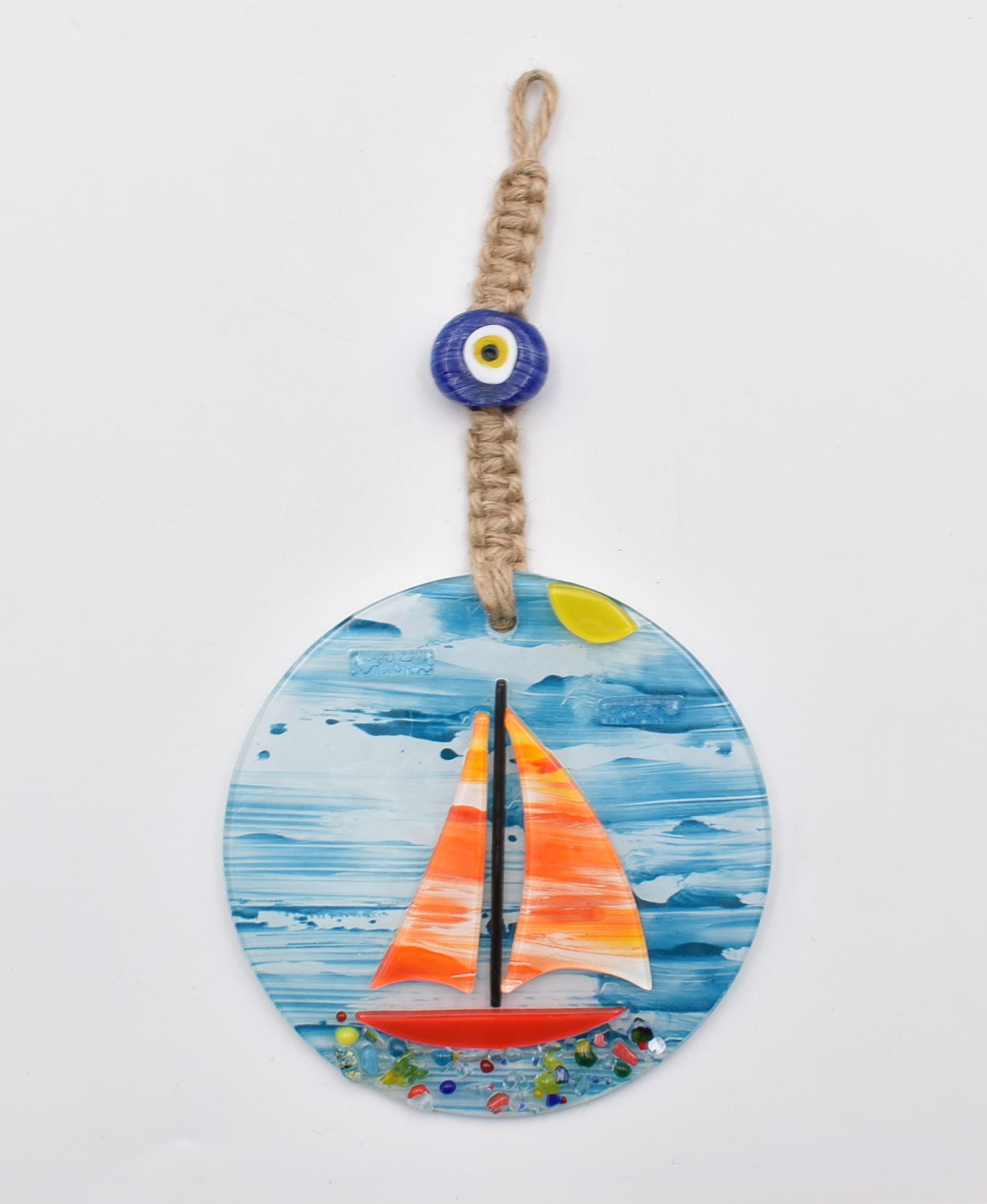 Κρεμαστό Γυάλινο Μάτι Φυσητό με Καραβάκι 12 cm