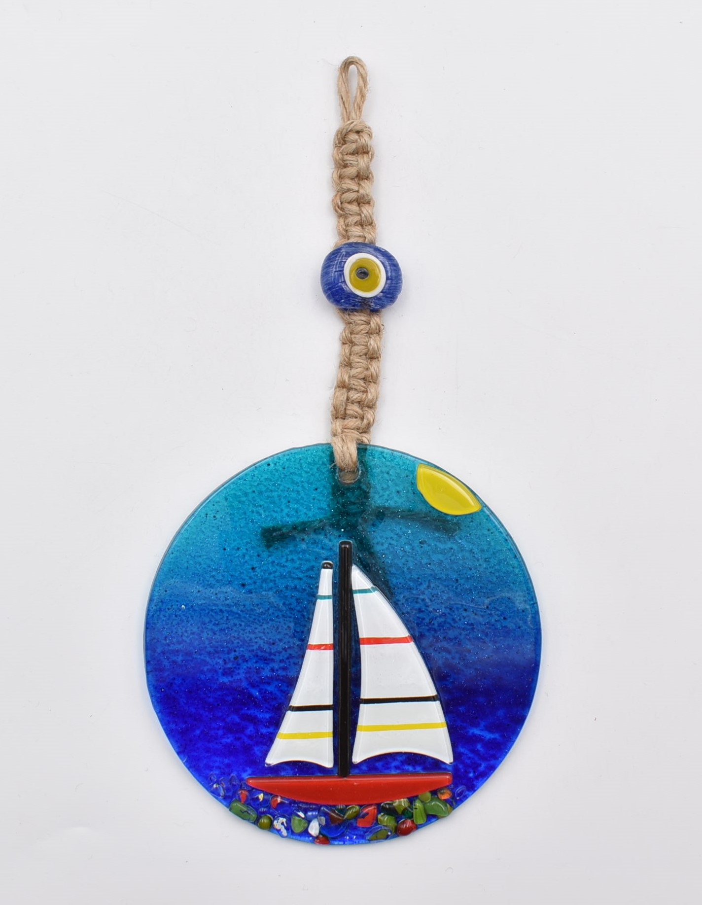 Κρεμαστό Γυάλινο Μάτι Φυσητό με Καραβάκι