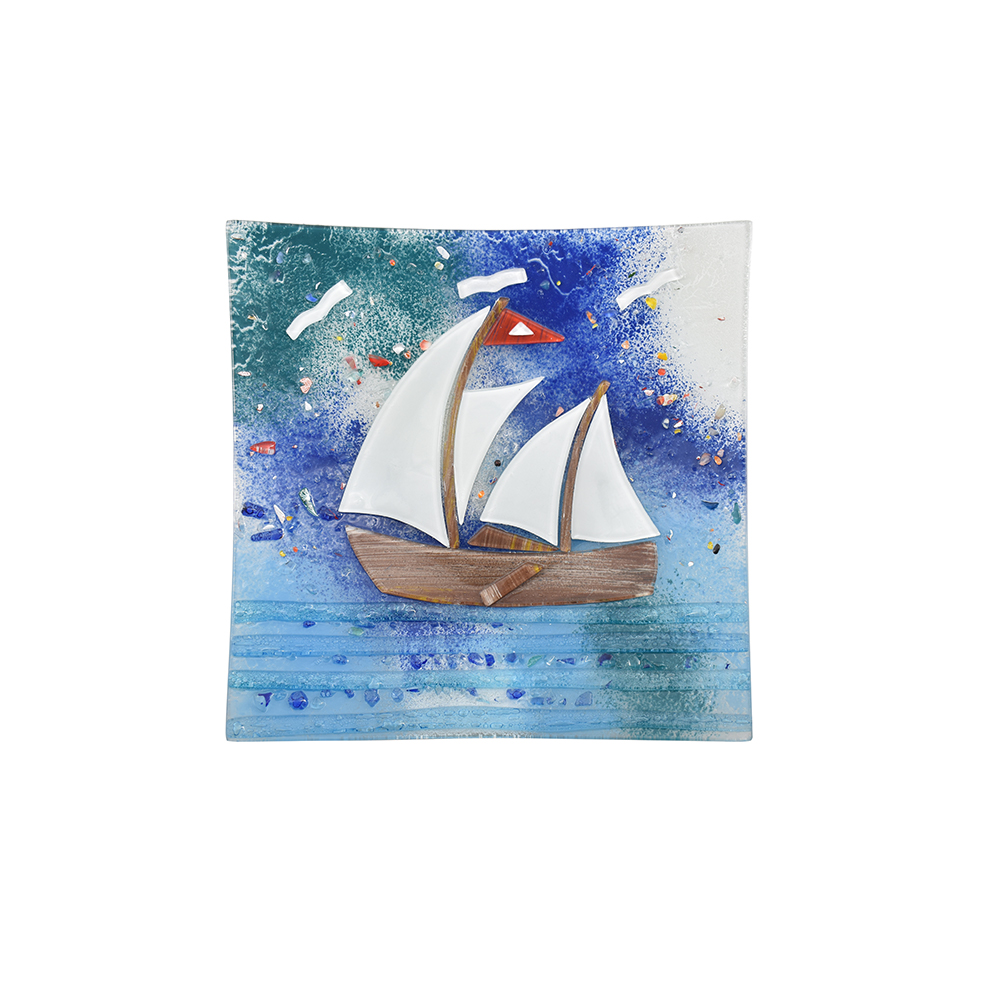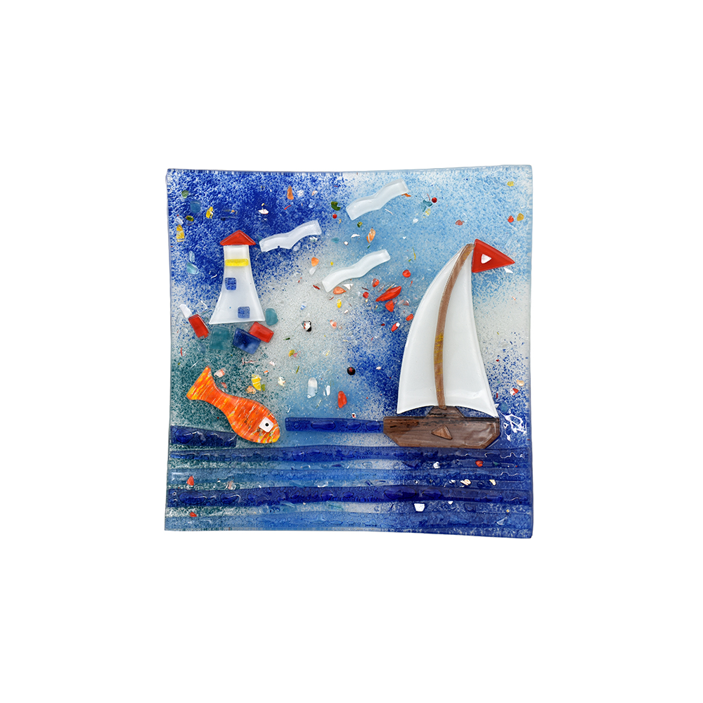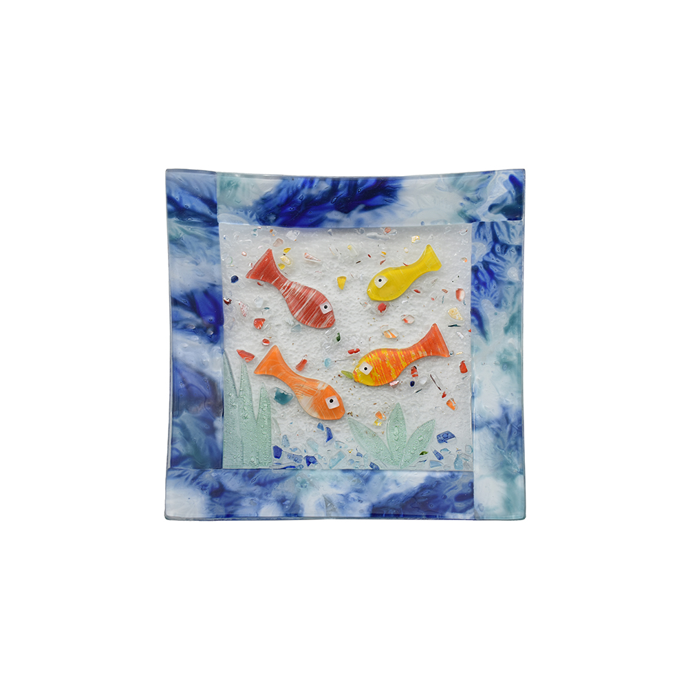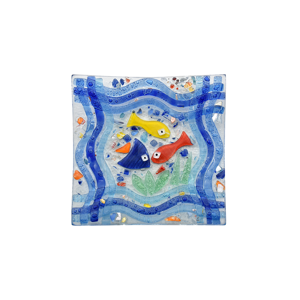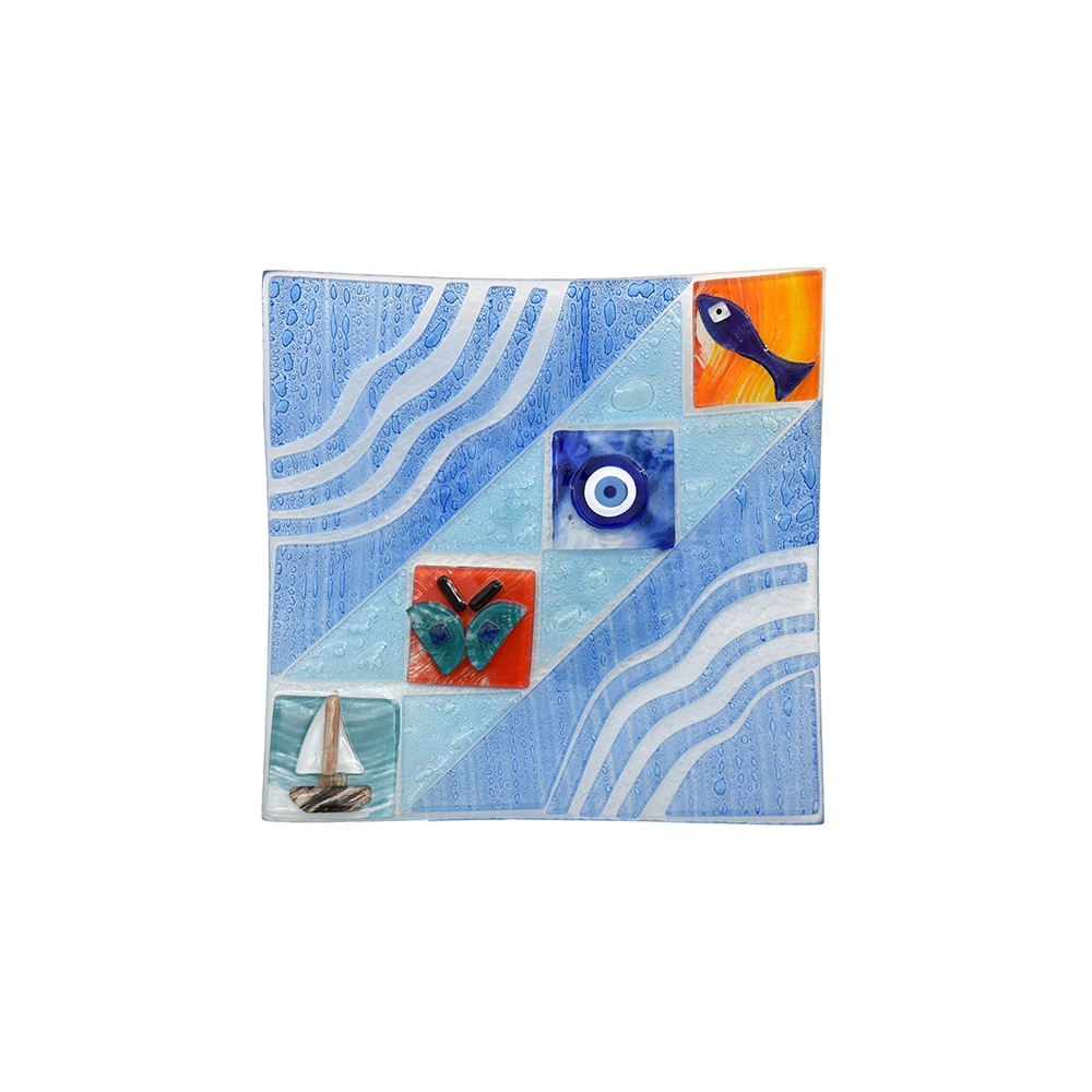 Φυσητό Τετράγωνο Πιάτο Γυαλιού με Θαλασσινά & Καλοκαιρινά Μοτίβα