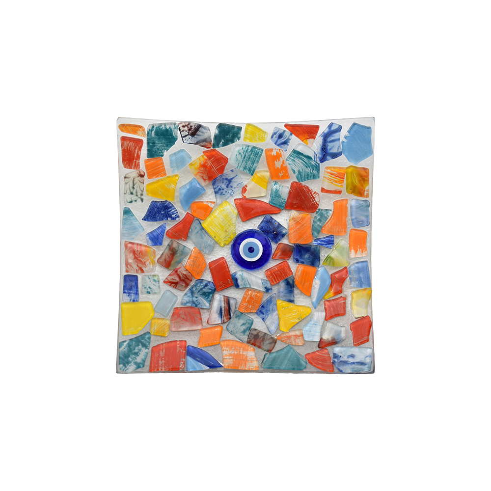 Φυσητό Τετράγωνο Πιάτο Γυαλιού με Θαλασσινά & Καλοκαιρινά Μοτίβα 23 cm