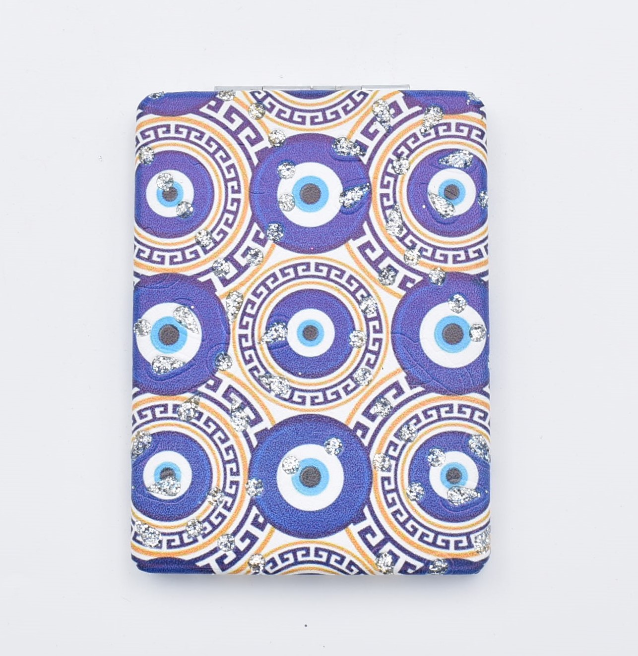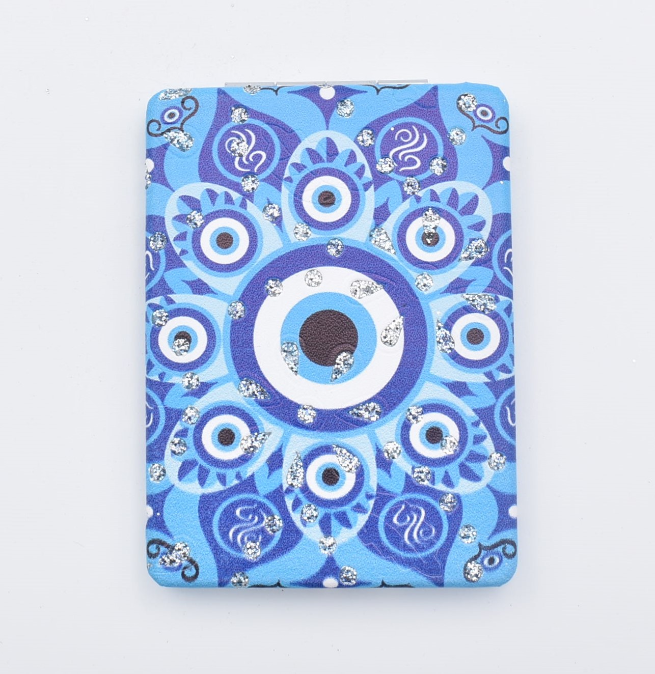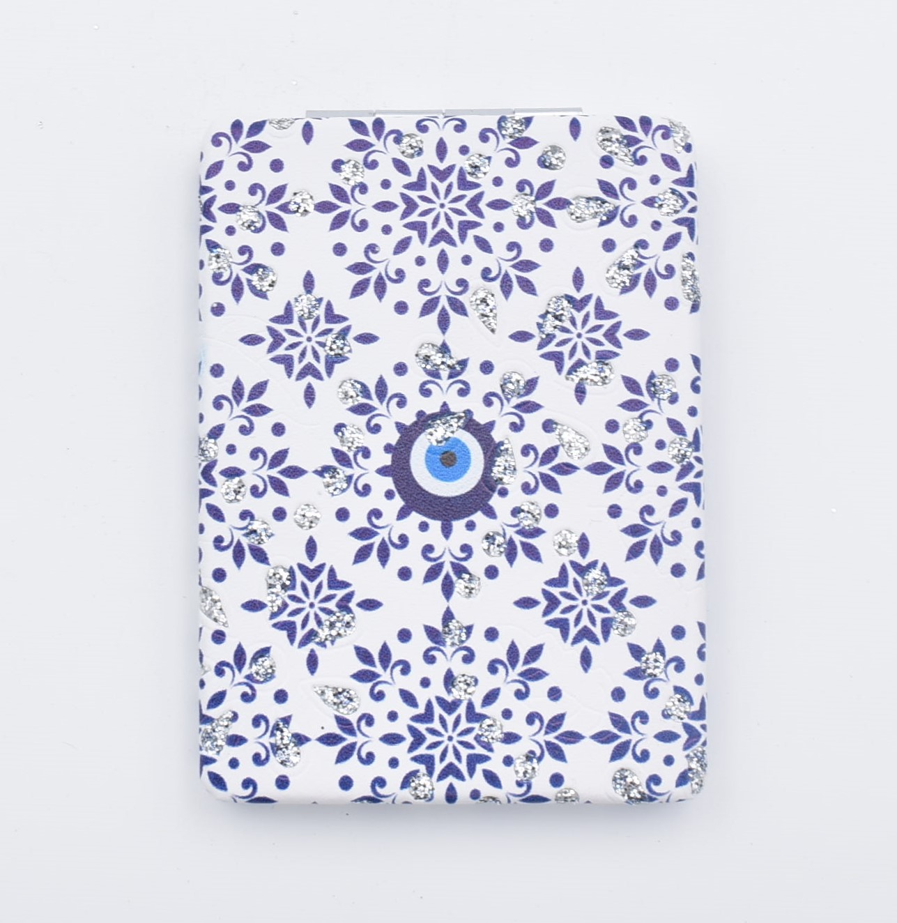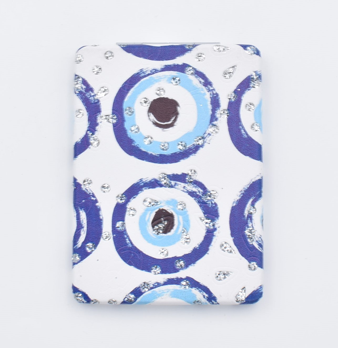 Κομψό ορθογώνιο καθρεπτάκι τσέπης με μοντέρνο σχέδιο “μάτι” σε αποχρώσεις του μπλε και του λευκού.
