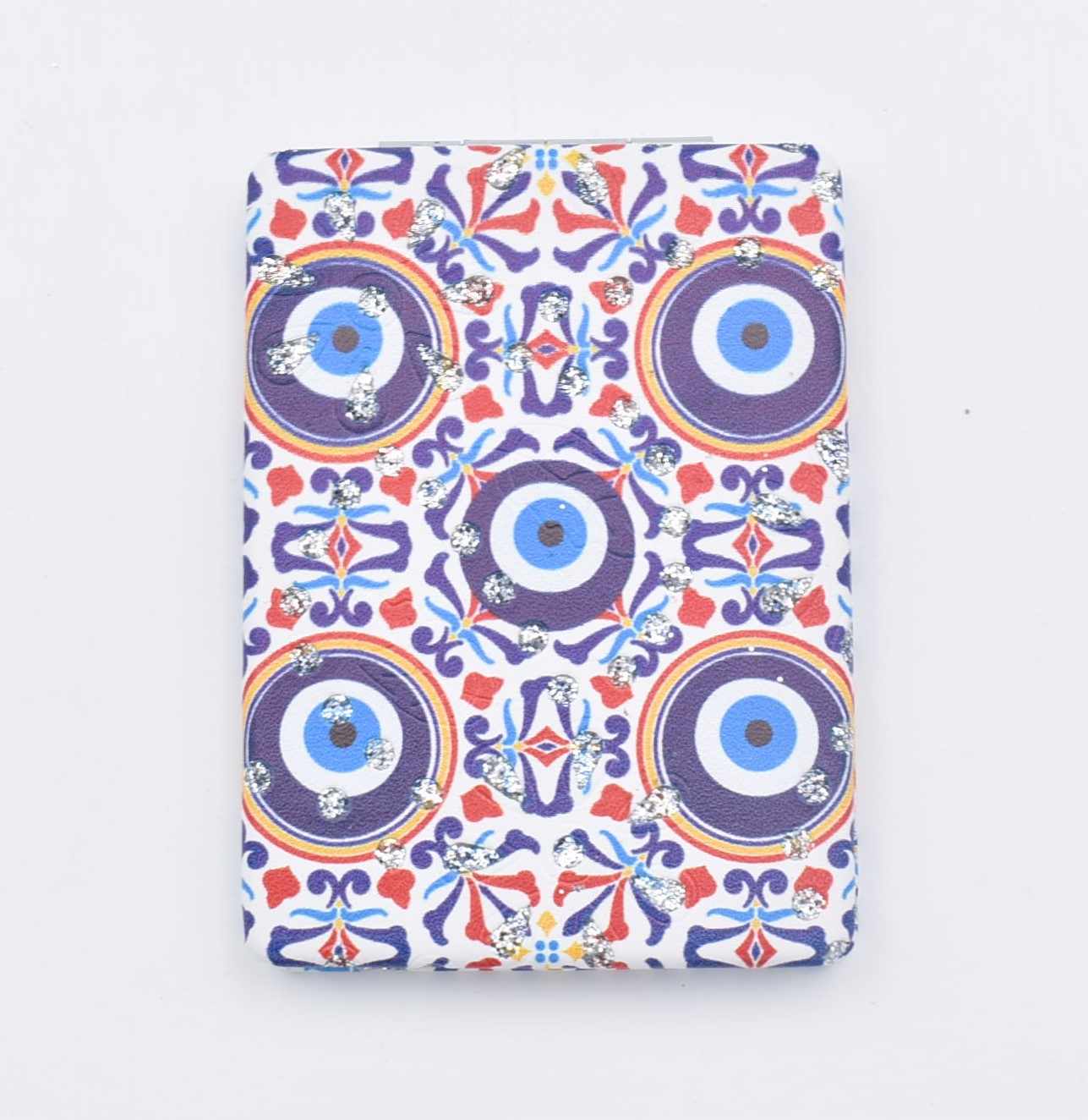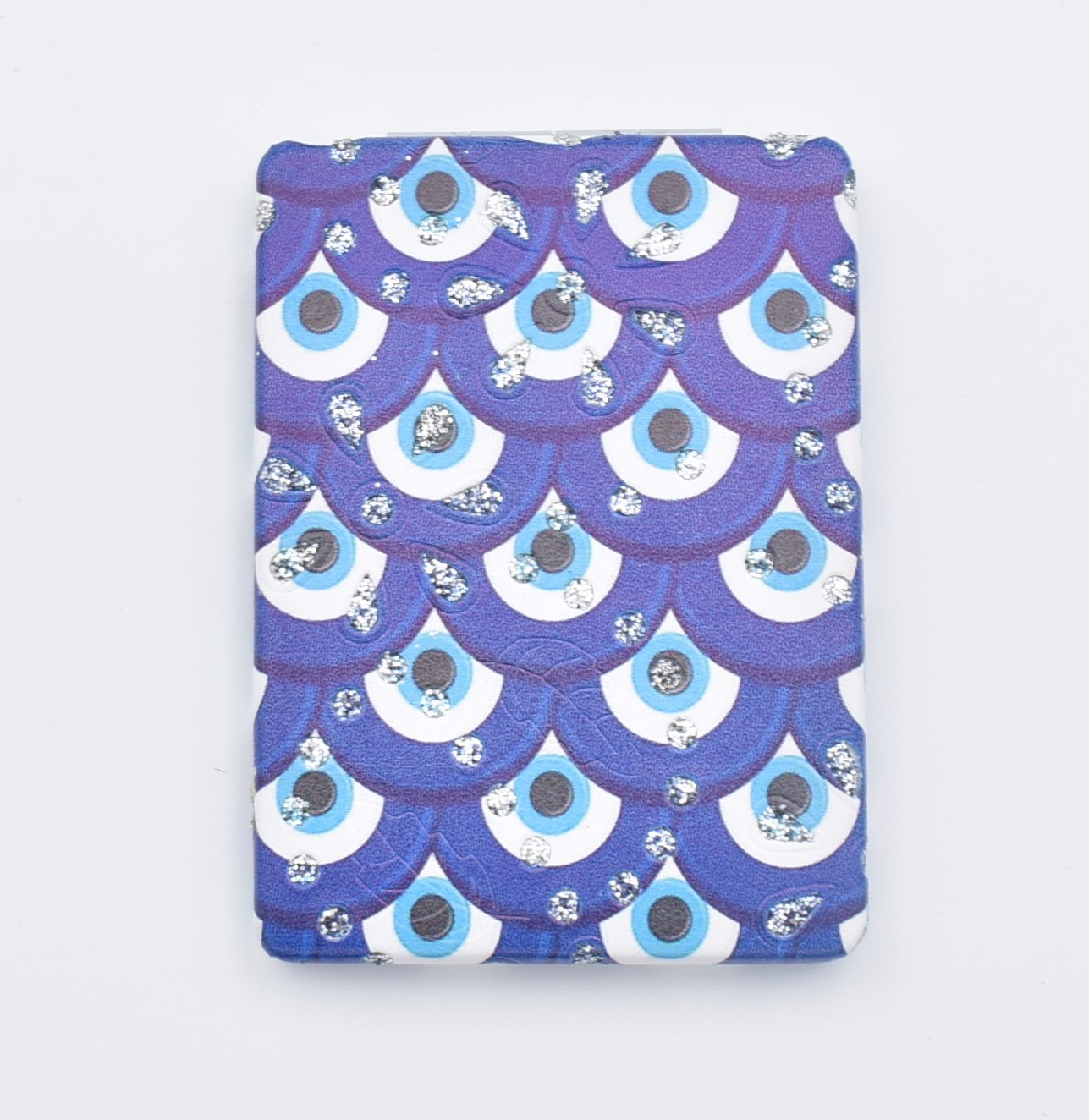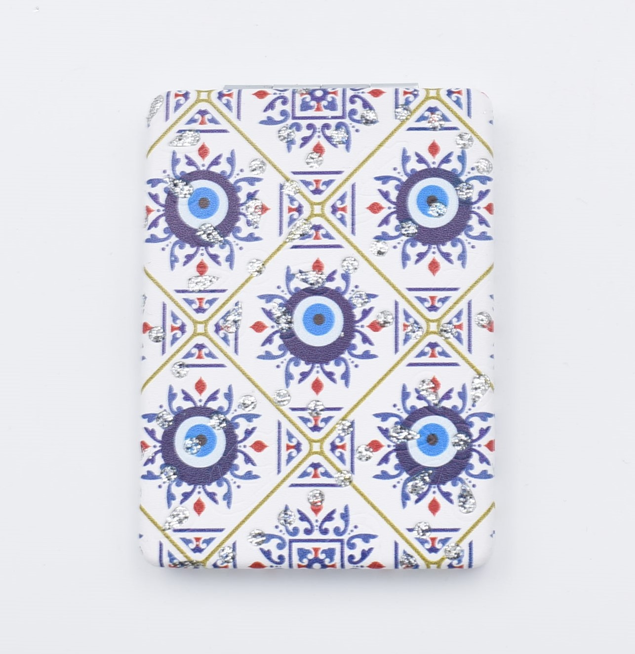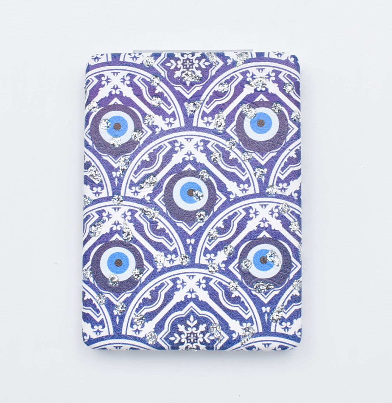 Κομψό ορθογώνιο καθρεπτάκι τσέπης με μοντέρνο σχέδιο “μάτι” σε αποχρώσεις του μπλε και του λευκού.