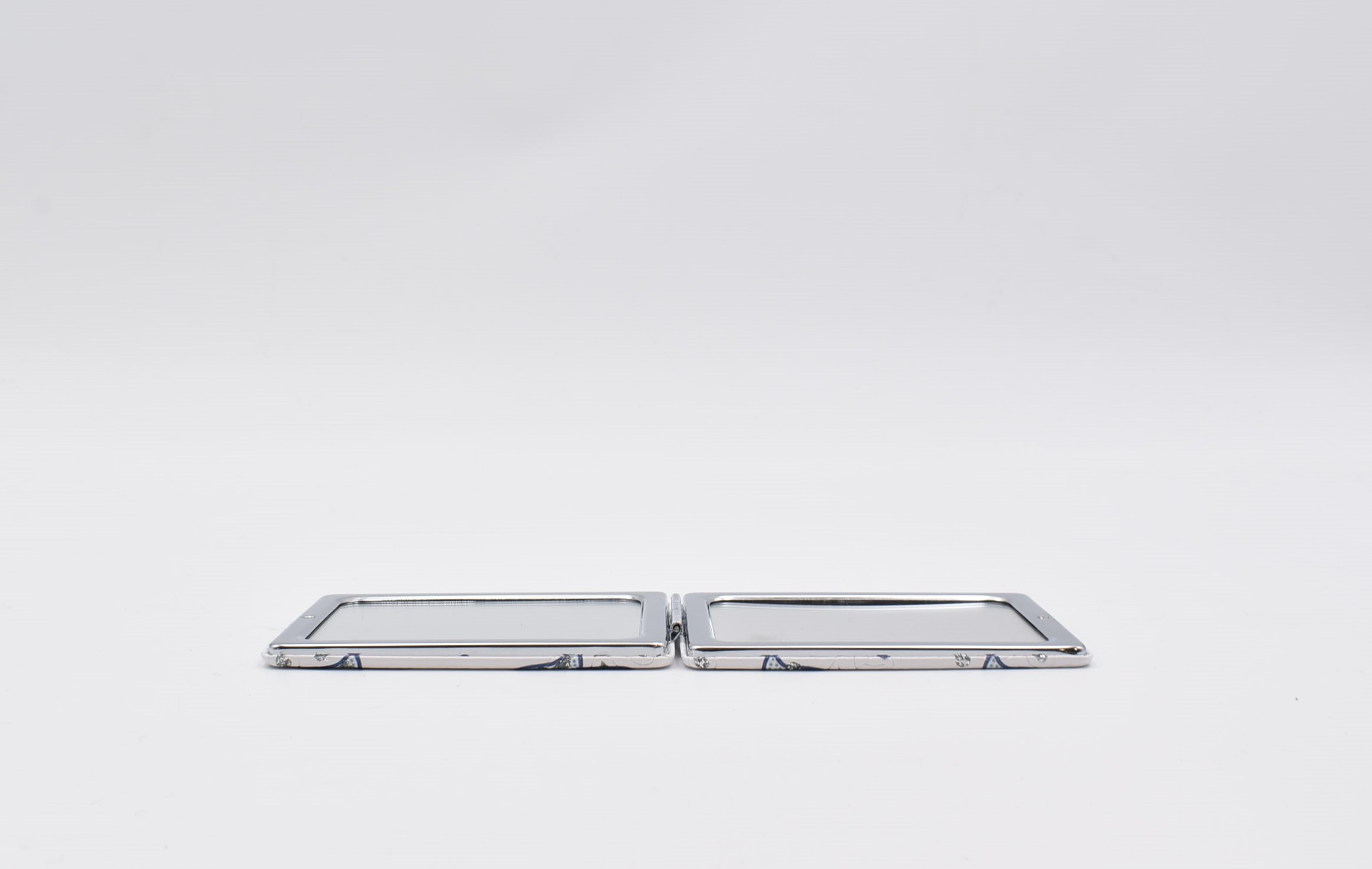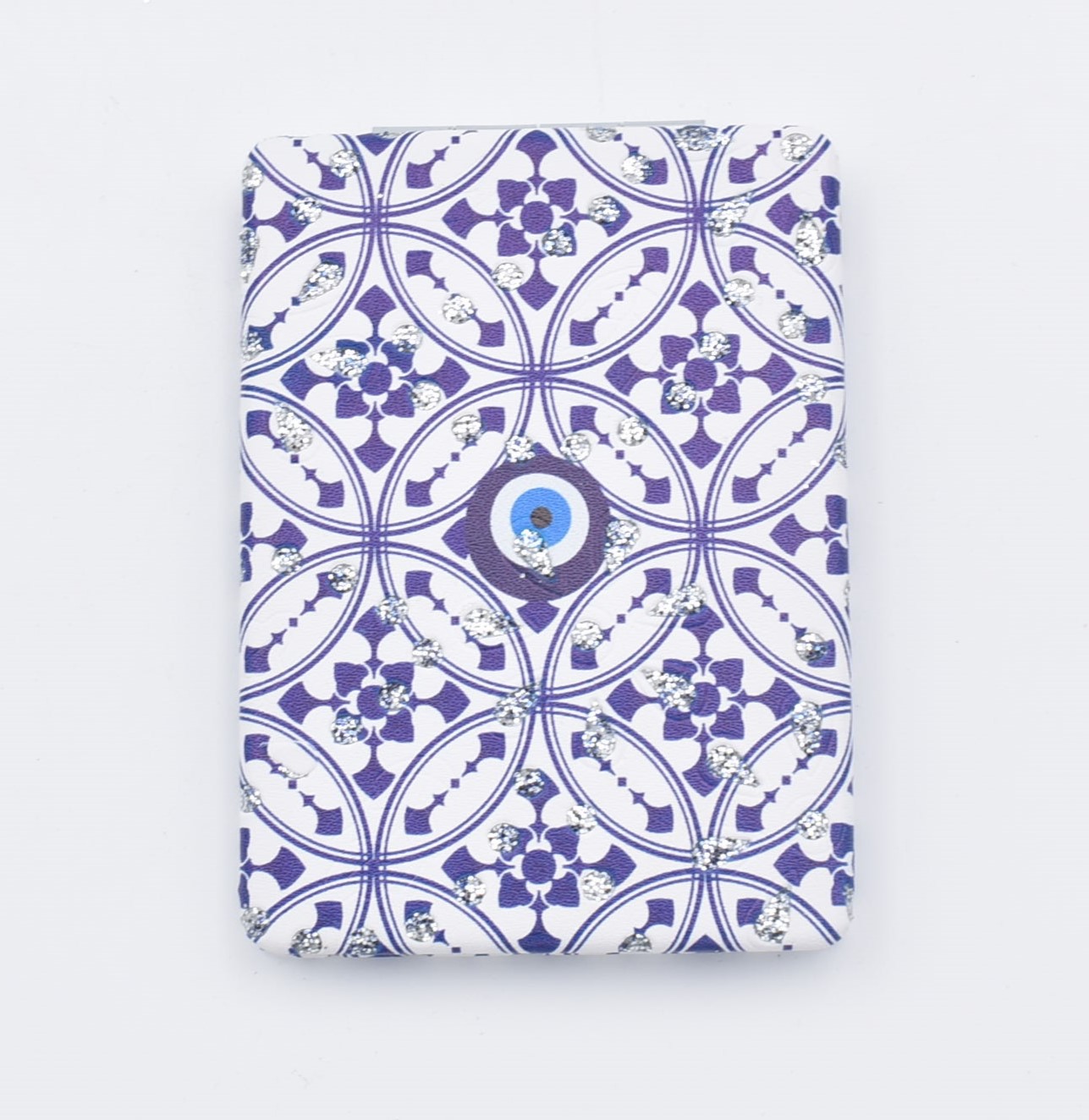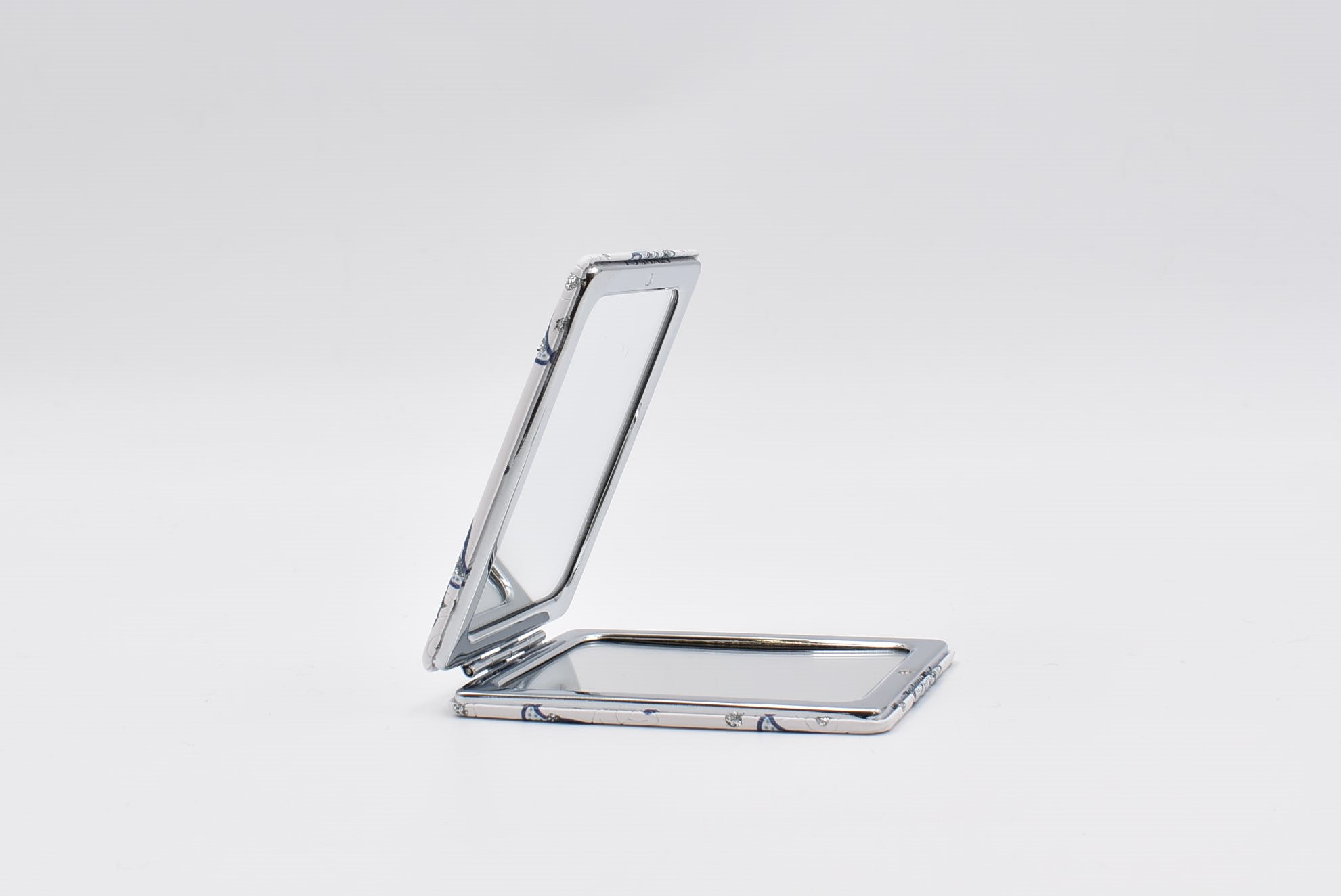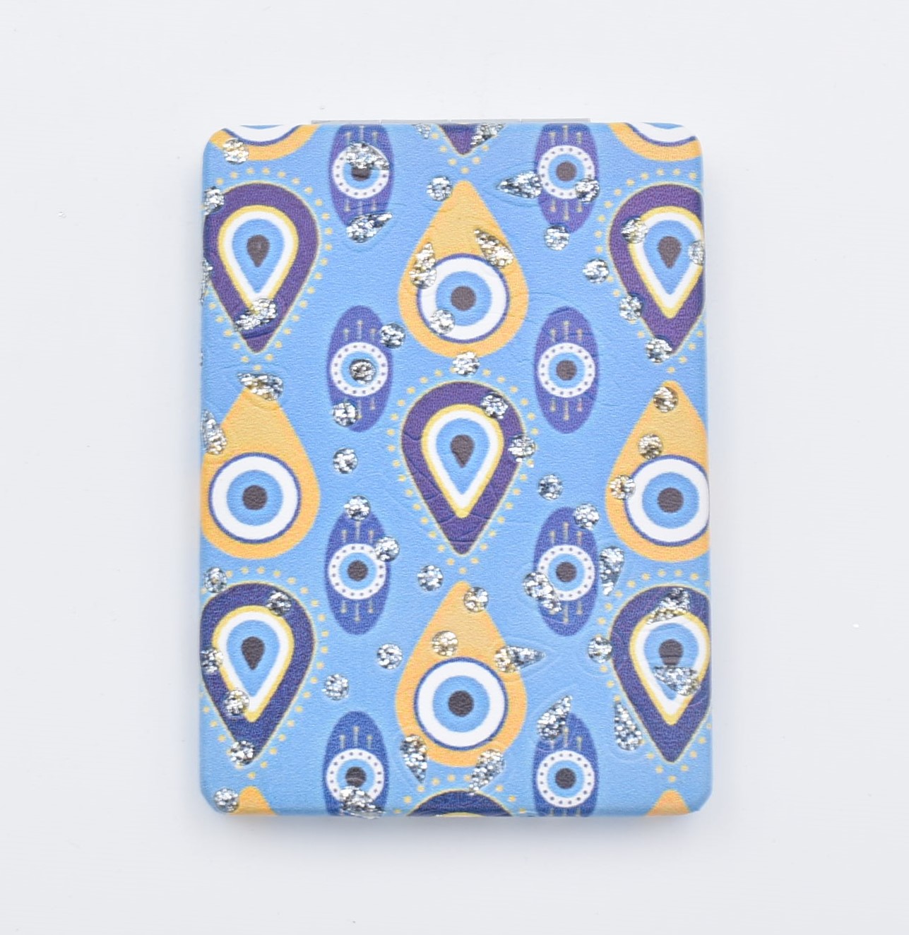 Κομψό ορθογώνιο καθρεπτάκι τσέπης με μοντέρνο σχέδιο “μάτι” σε αποχρώσεις του μπλε και του λευκού.