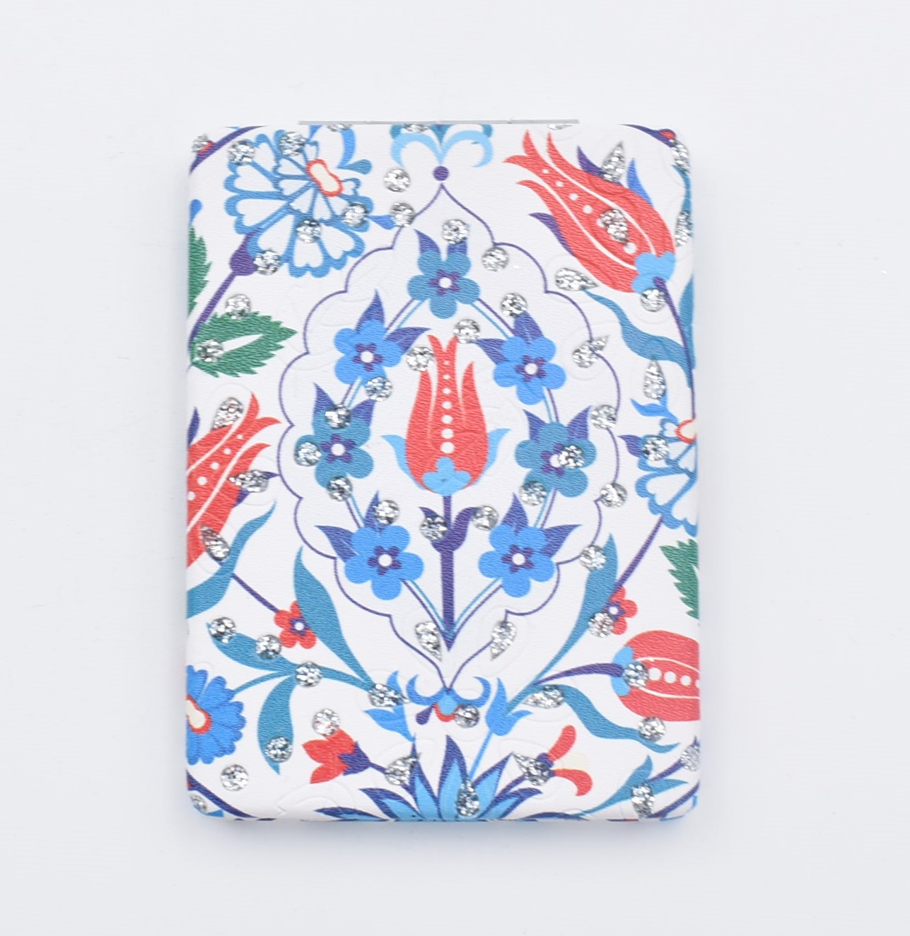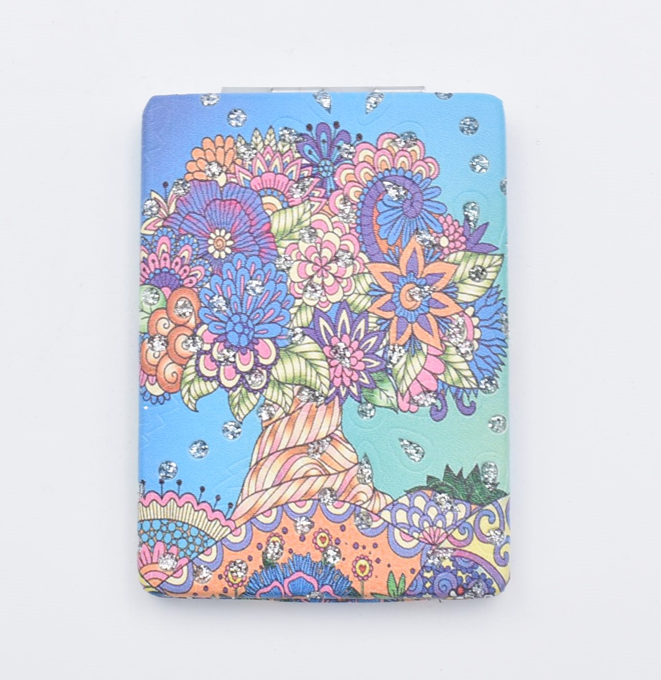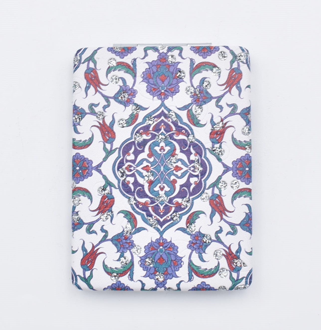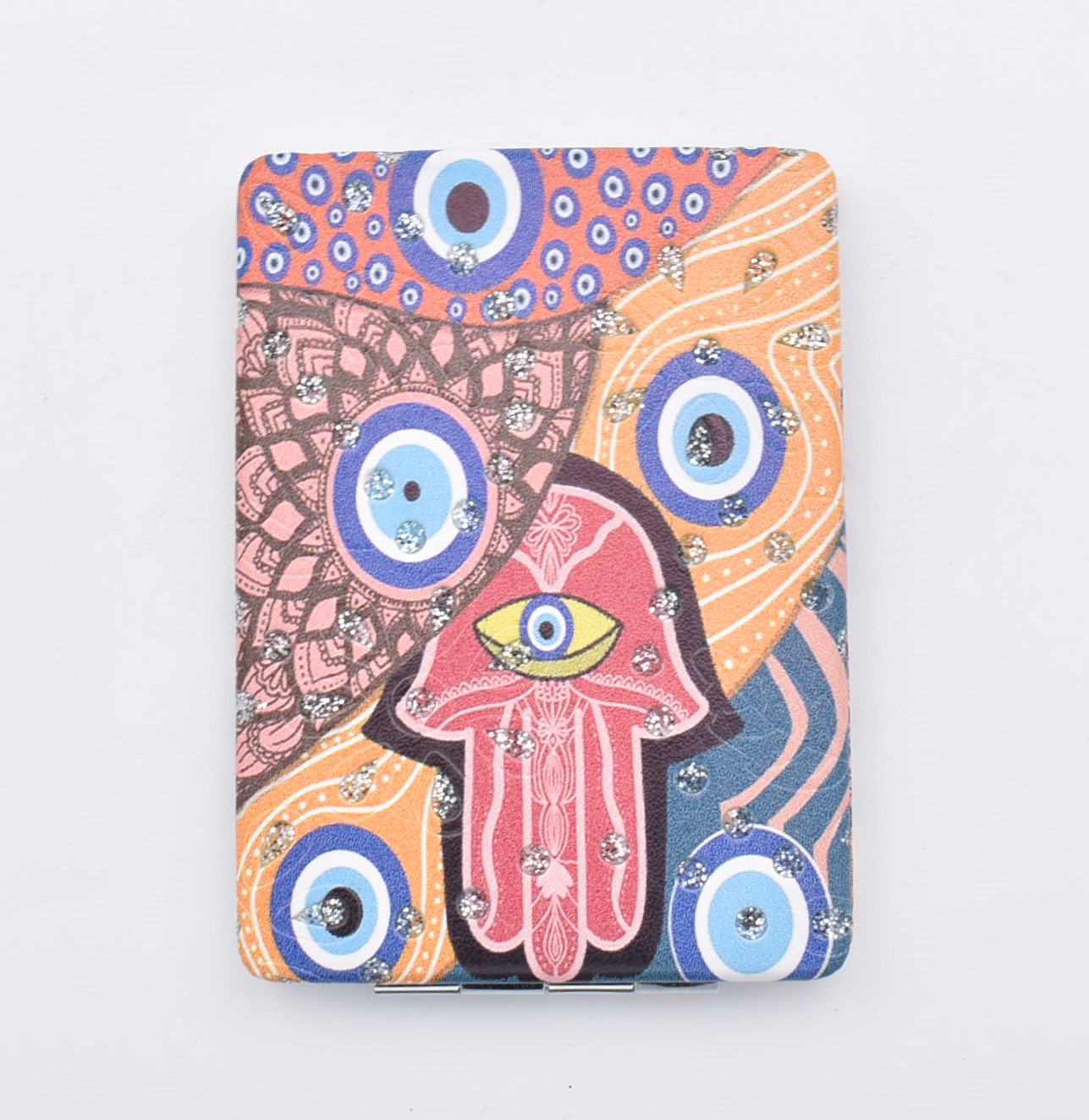 Κομψό ορθογώνιο καθρεπτάκι τσέπης με μοντέρνα σχέδια όπως “χέρι της Φατμά, λουλούδια, ζωάκια, δέντρο της ζωής ” σε διάφορες αποχρώσεις .