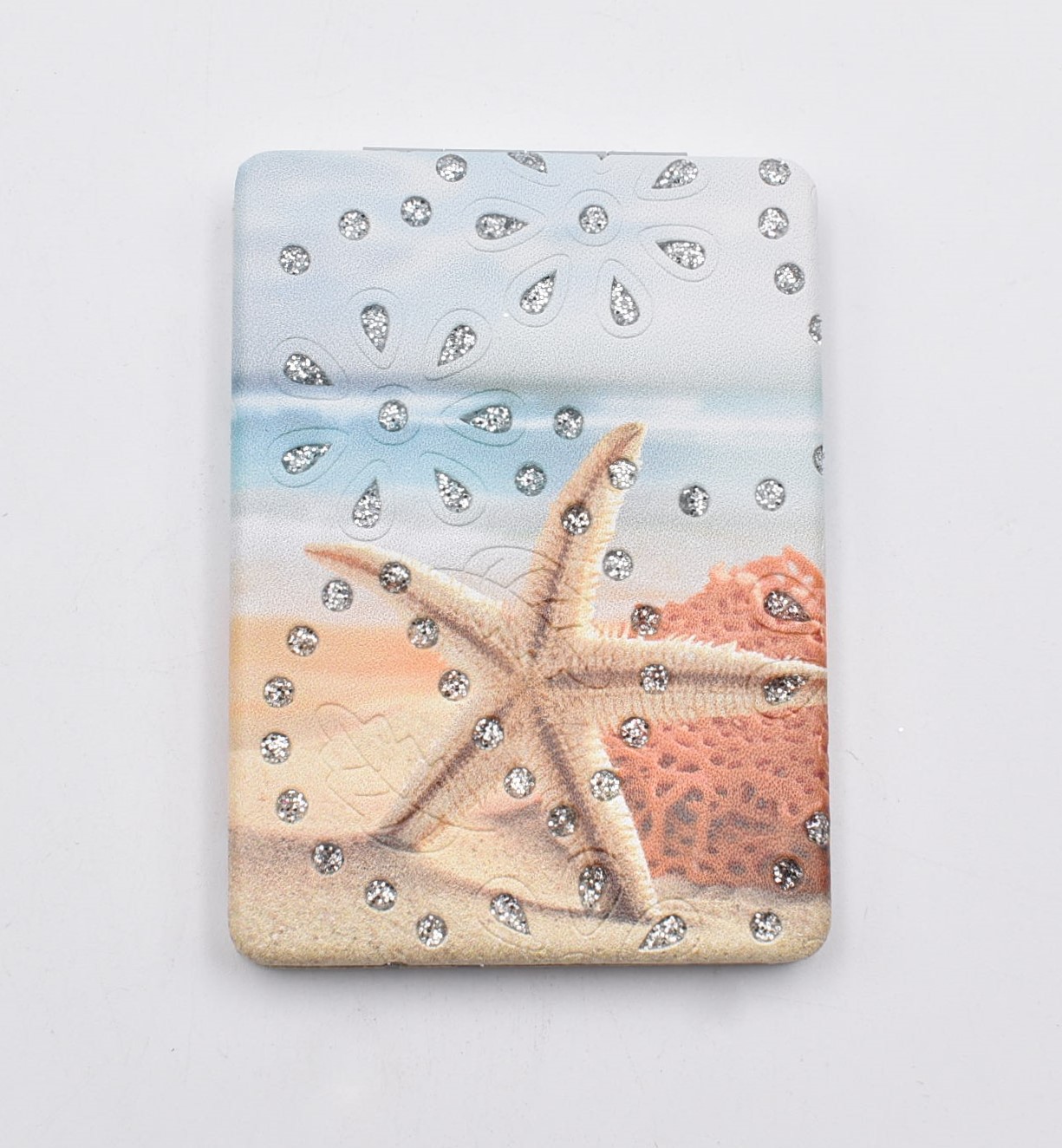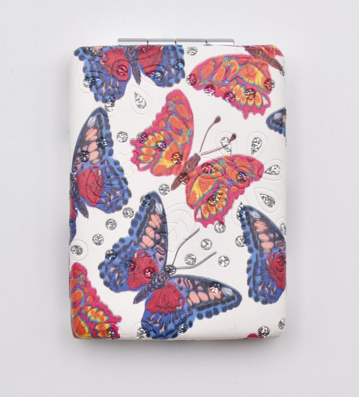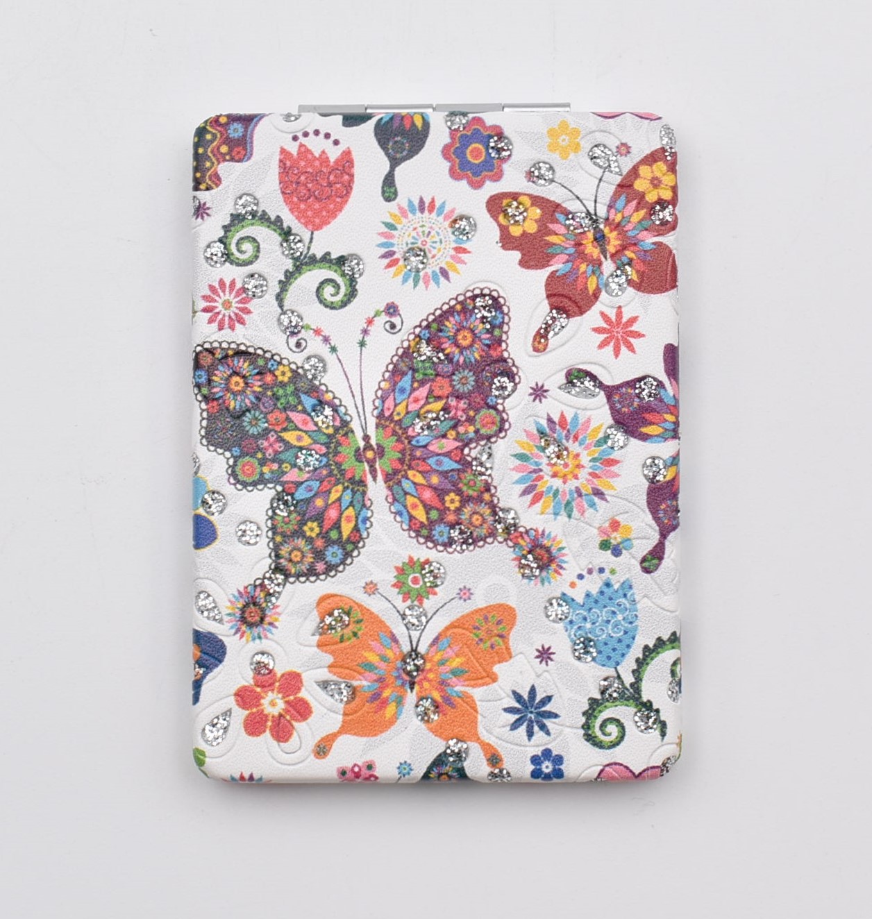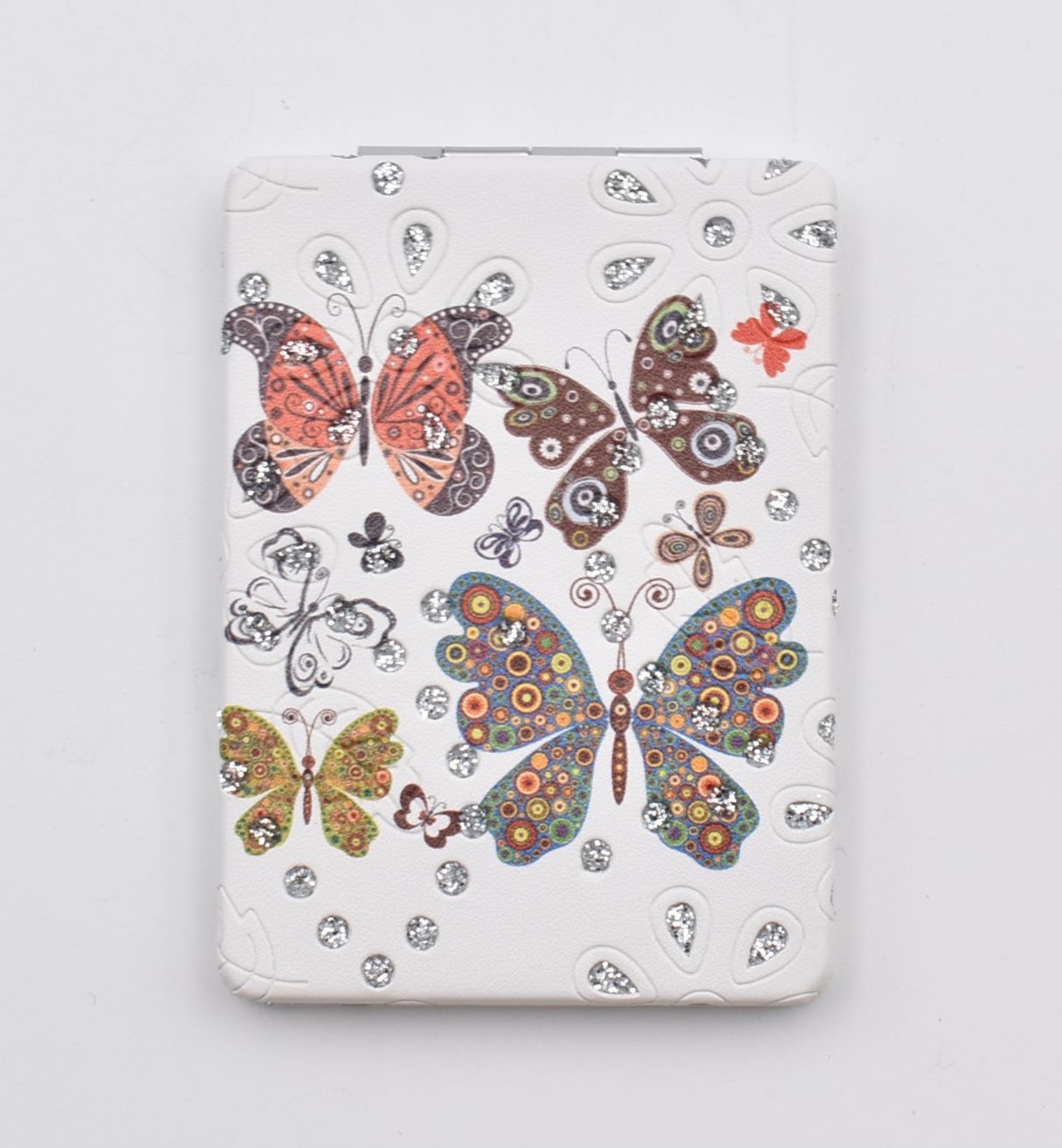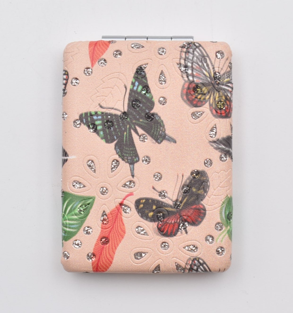 Κομψό ορθογώνιο καθρεπτάκι τσέπης με μοντέρνα σχέδια όπως “χέρι της Φατμά, λουλούδια, ζωάκια, δέντρο της ζωής ” σε διάφορες αποχρώσεις .