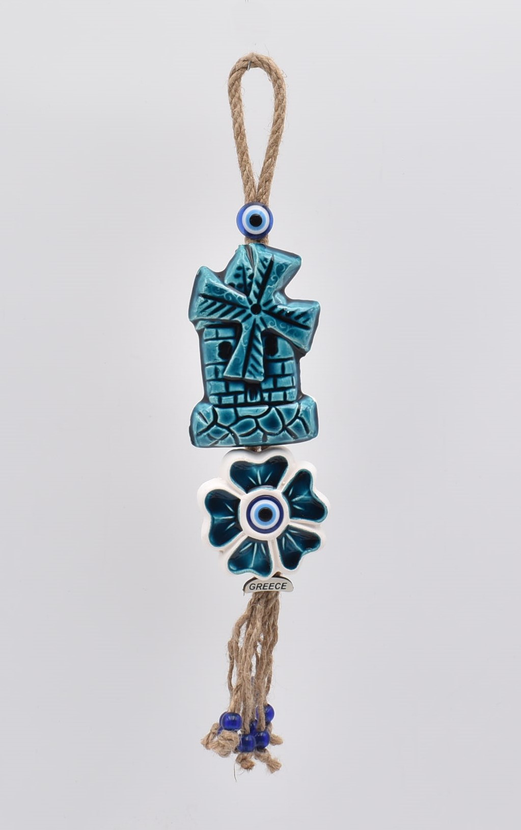 Κρεμαστό διπλό κεραμικό ανεμόμυλος 10 cm με κεραμικό λουλούδι
