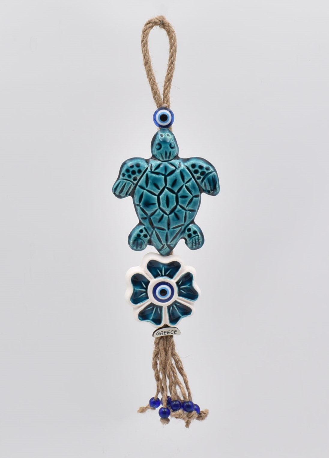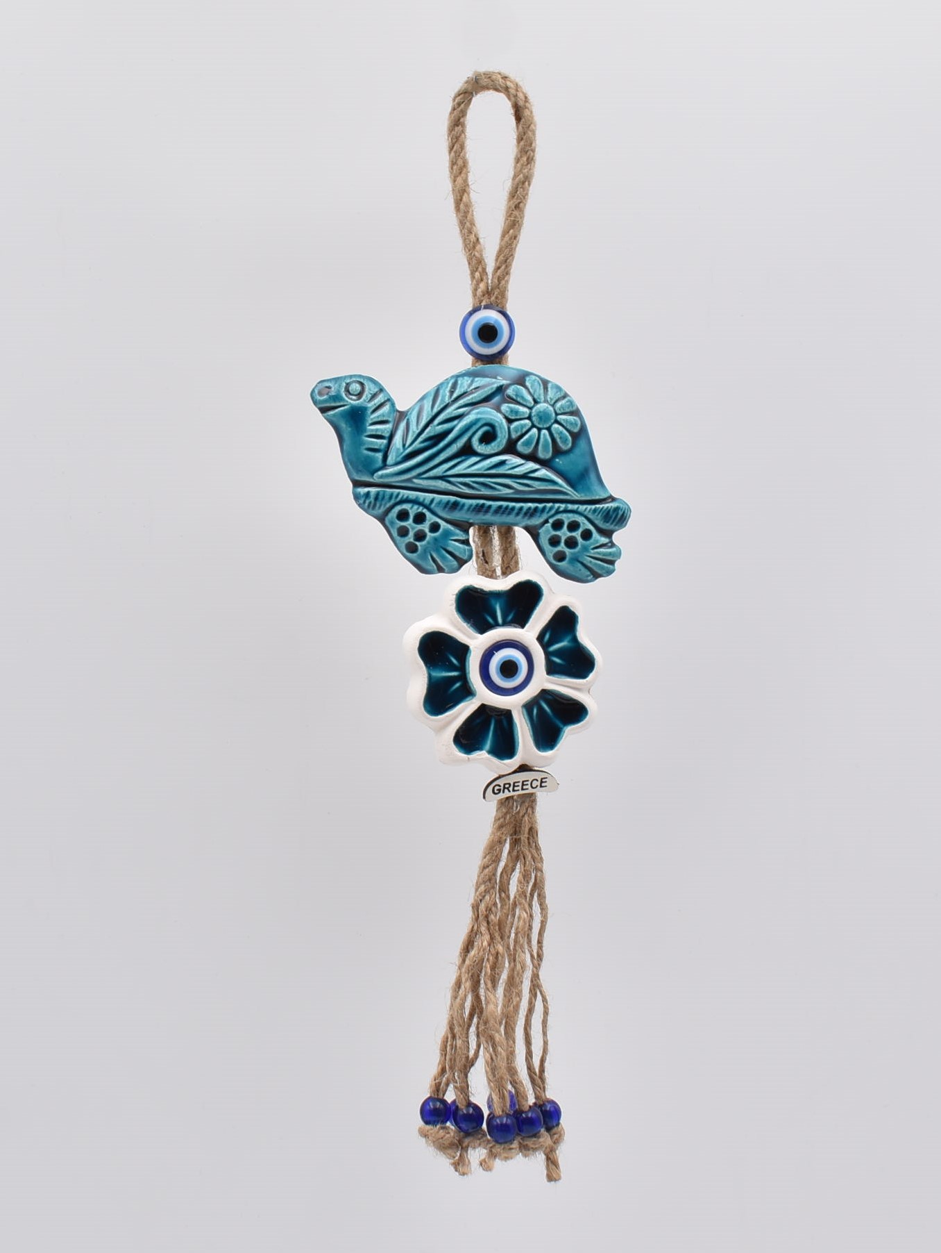 Χειροποίητο κεραμικό διπλό κρεμαστό χελώνα με κεραμικό λουλούδι