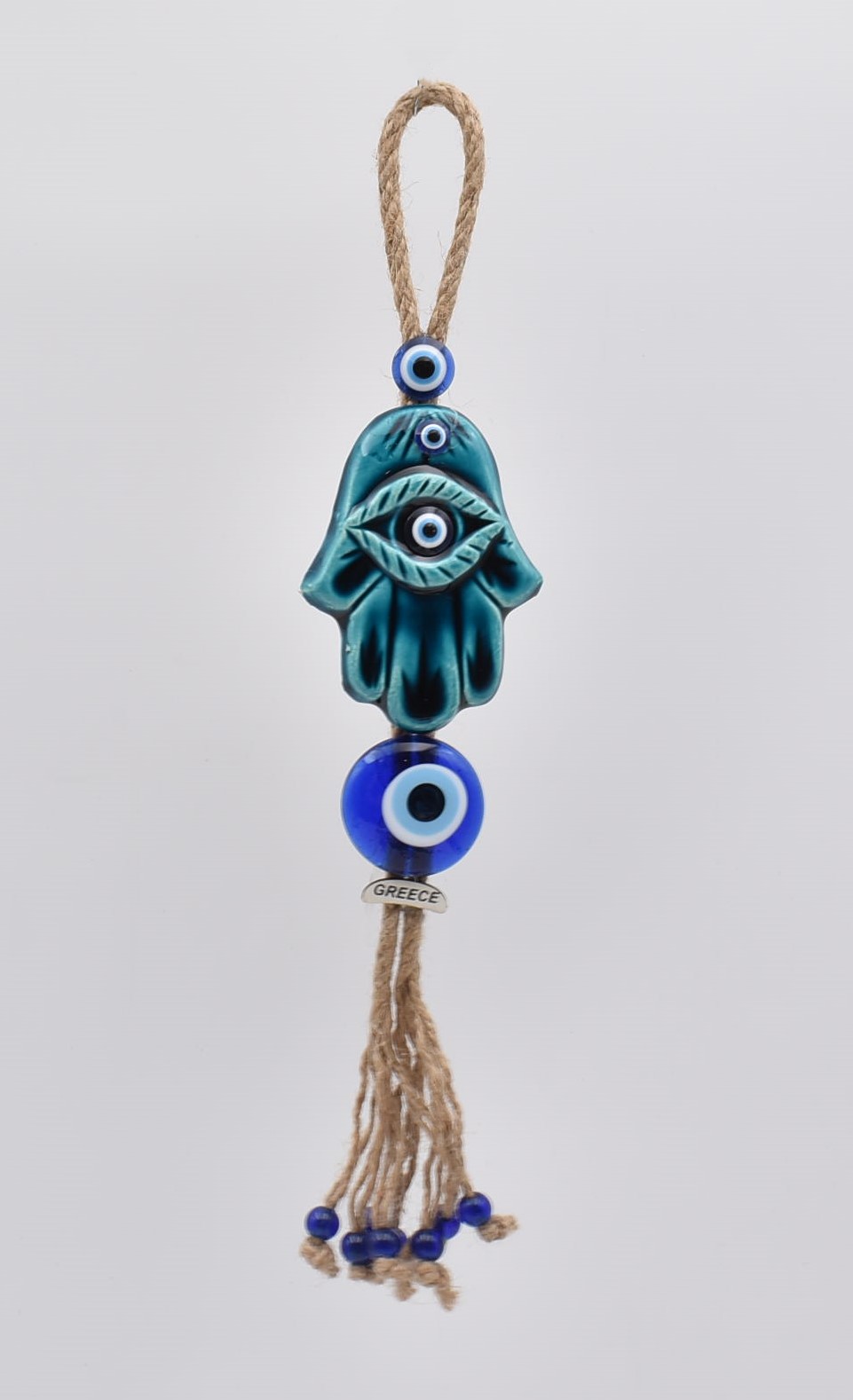 Χειροποίητο κεραμικό διπλό κρεμαστό χέρι της Φατμά με μάτι