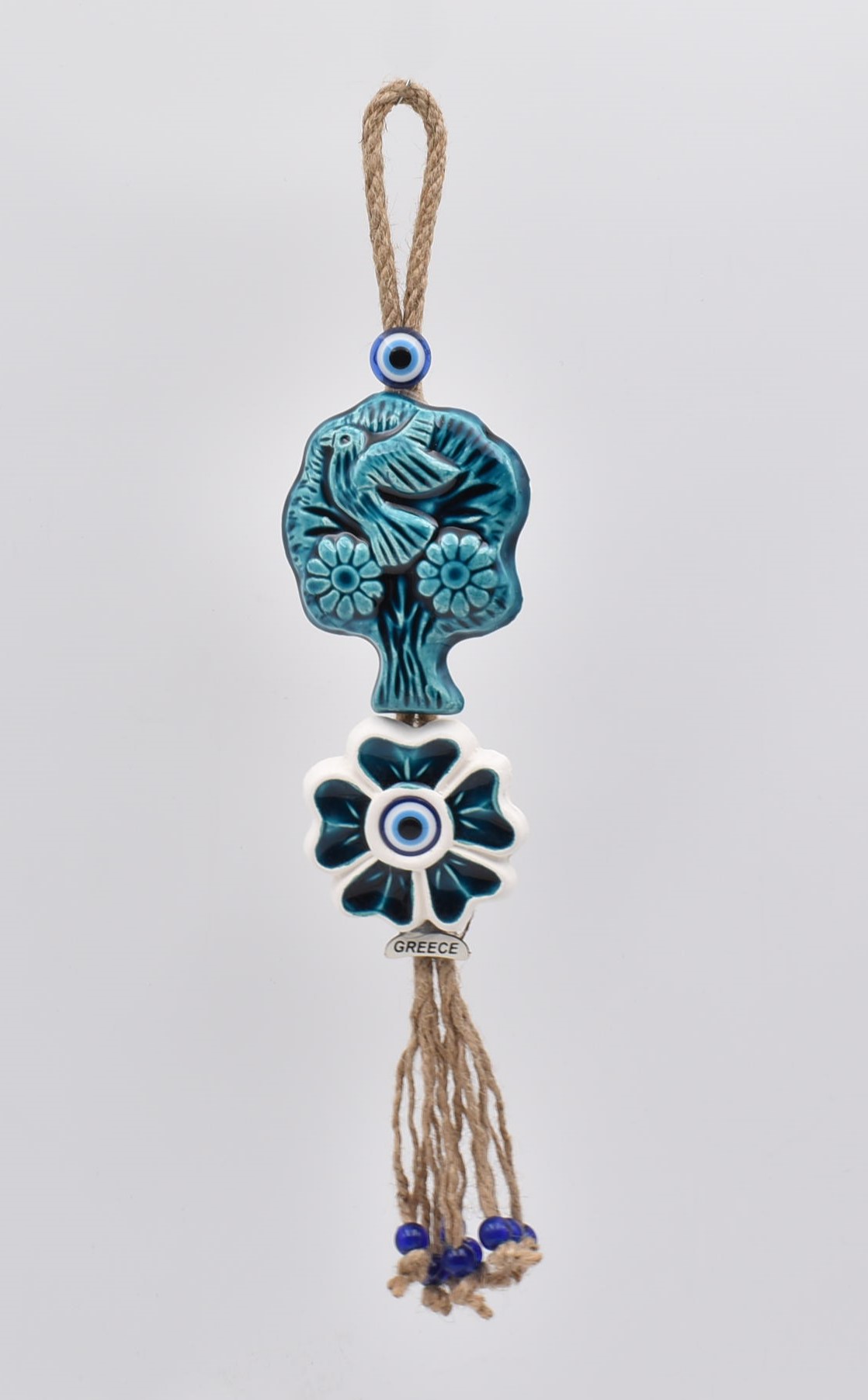 Χειροποίητο κεραμικό διπλό κρεμαστό δέντρο με κεραμικό λουλούδι
