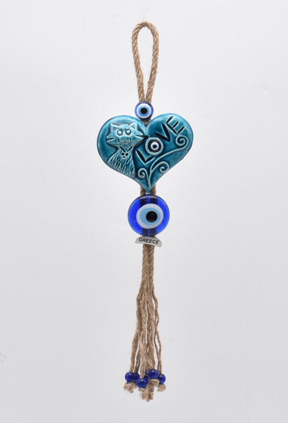 Χειροποίητο κεραμικό διπλό κρεμαστό καρδιά με μάτι