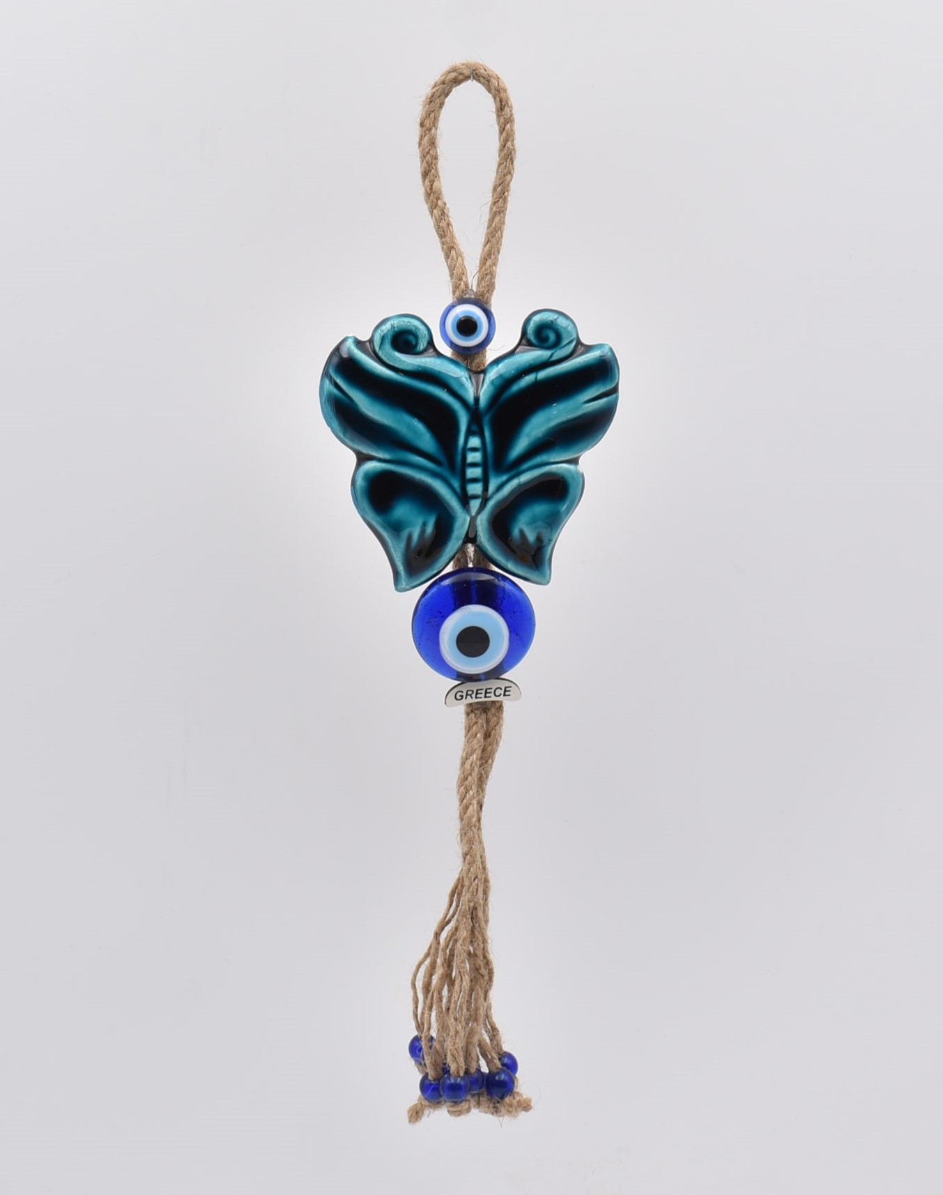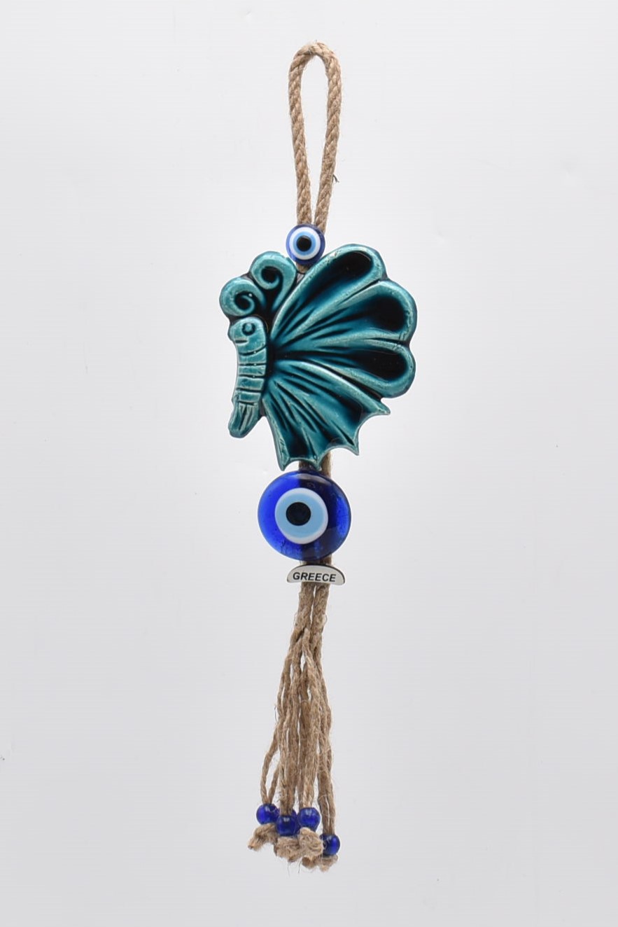 Χειροποίητο κεραμικό διπλό κρεμαστό πεταλούδα με μάτι