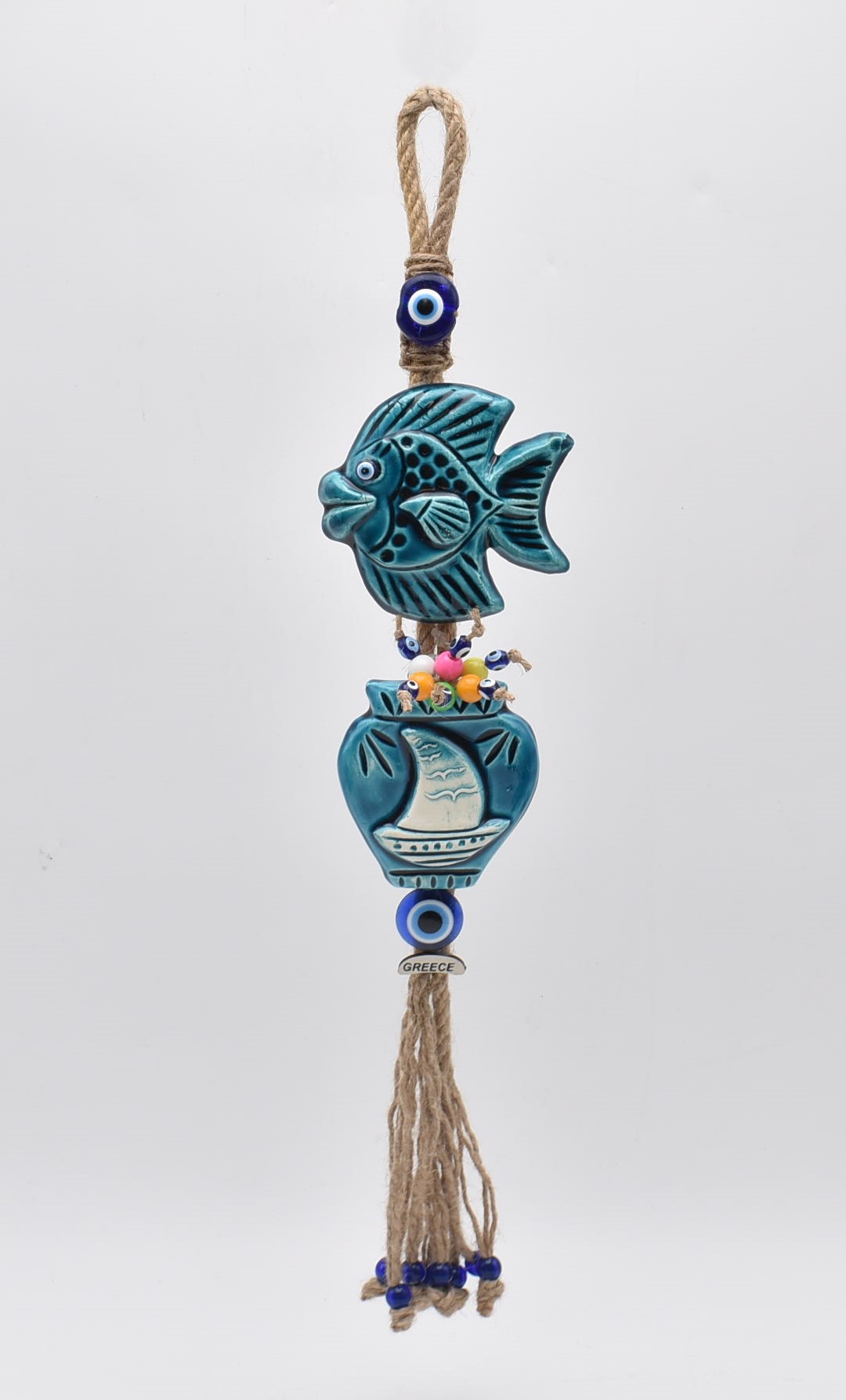 Κρεμαστό Διπλό Κεραμικό Ψάρι 10 cm & Στάμνα 10 cm