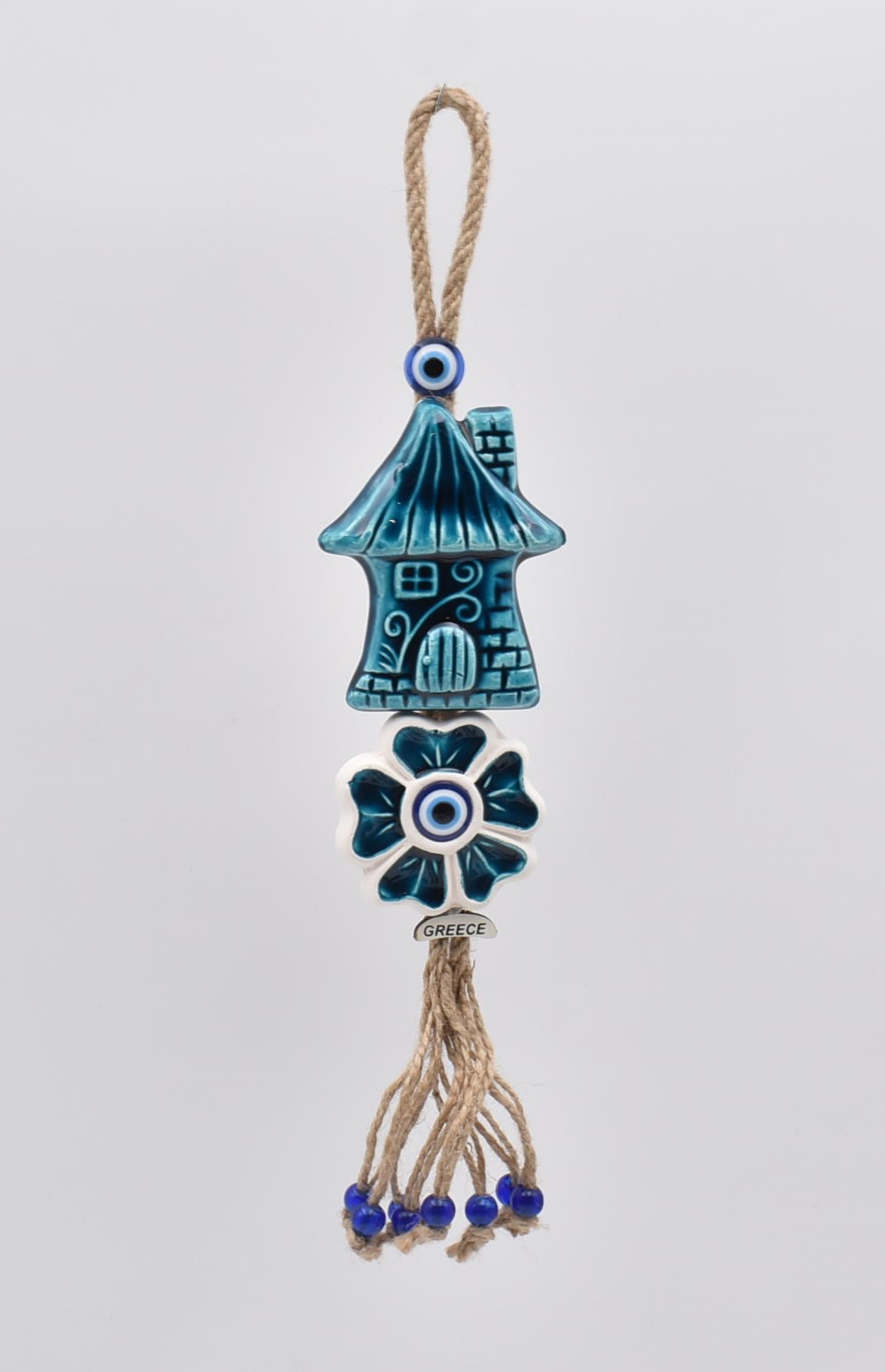 Χειροποίητο κεραμικό διπλό κρεμαστό σπίτι με κεραμικό λουλούδι