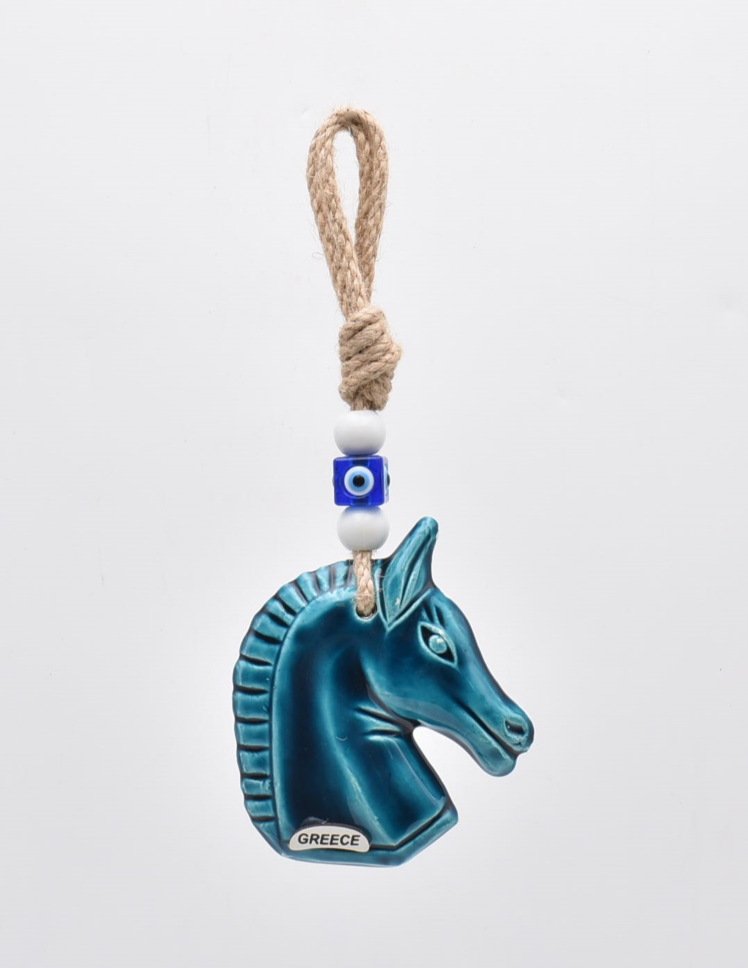 Κρεμαστό κεραμικό άλογο με λευκή χάντρα