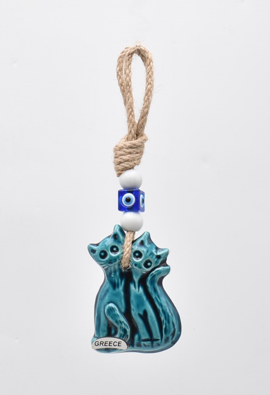 Χειροποίητο κεραμικό κρεμαστό σε σχήμα γάτες