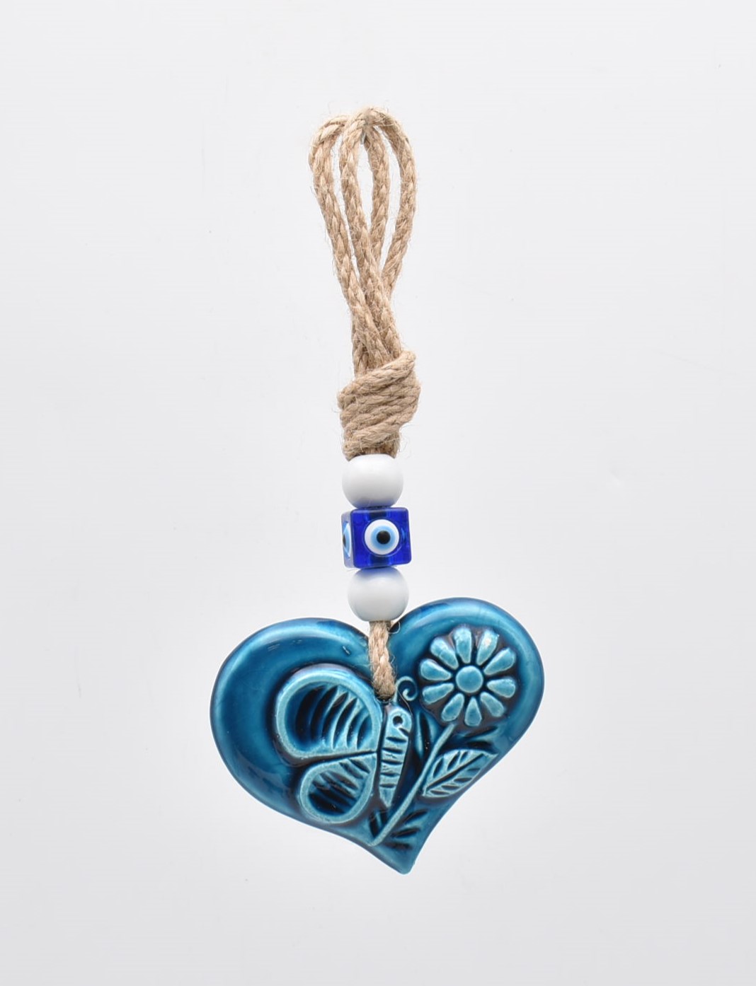Κρεμαστό κεραμικό καρδιά με λευκή χάντρα 10 cm