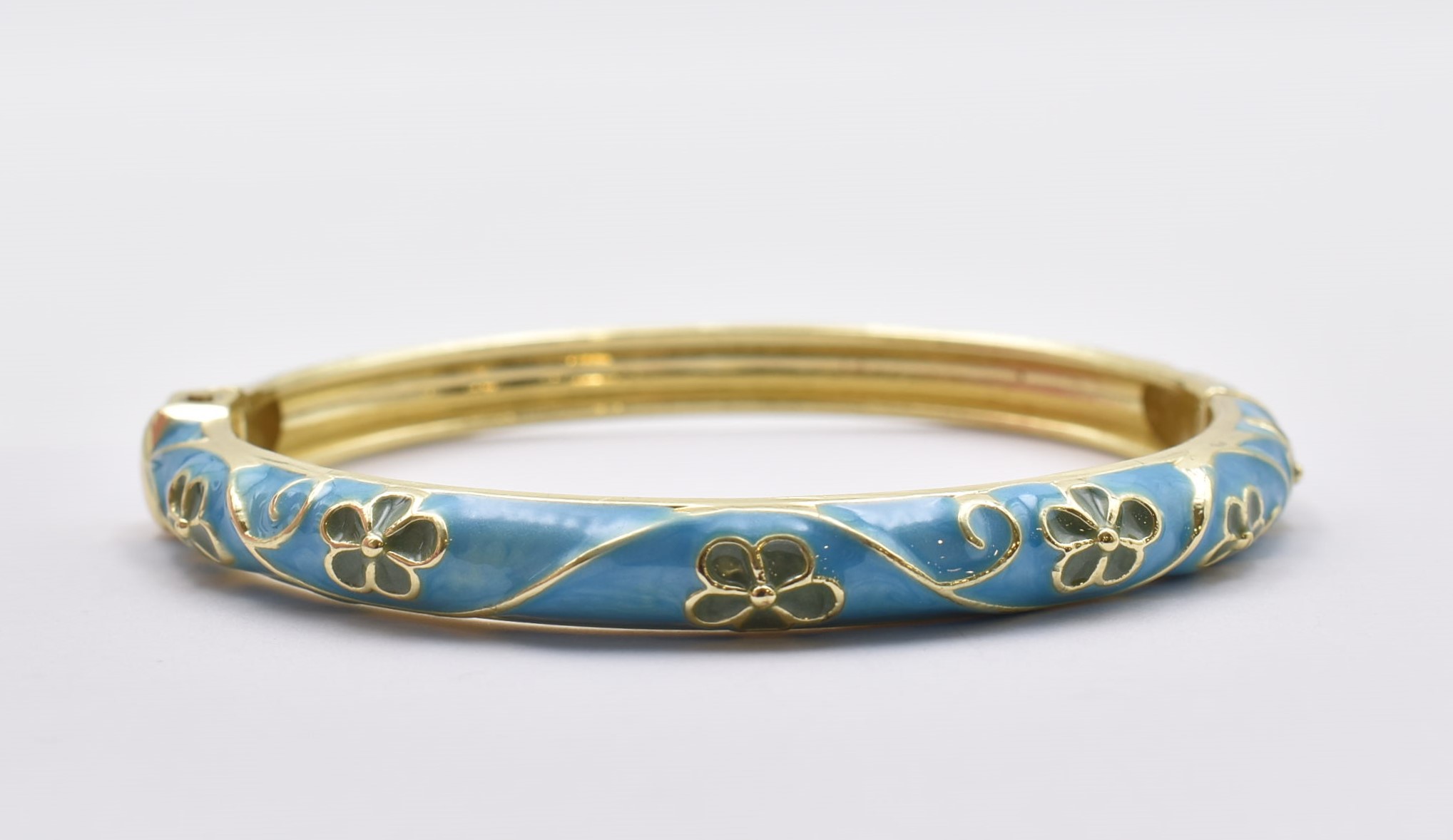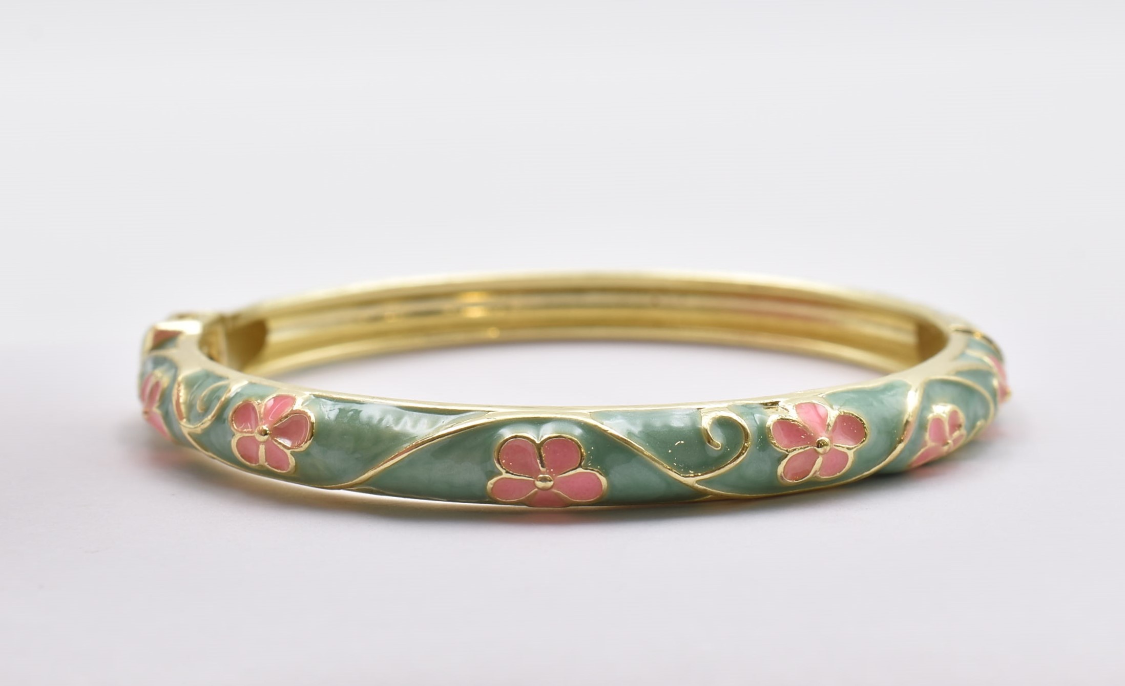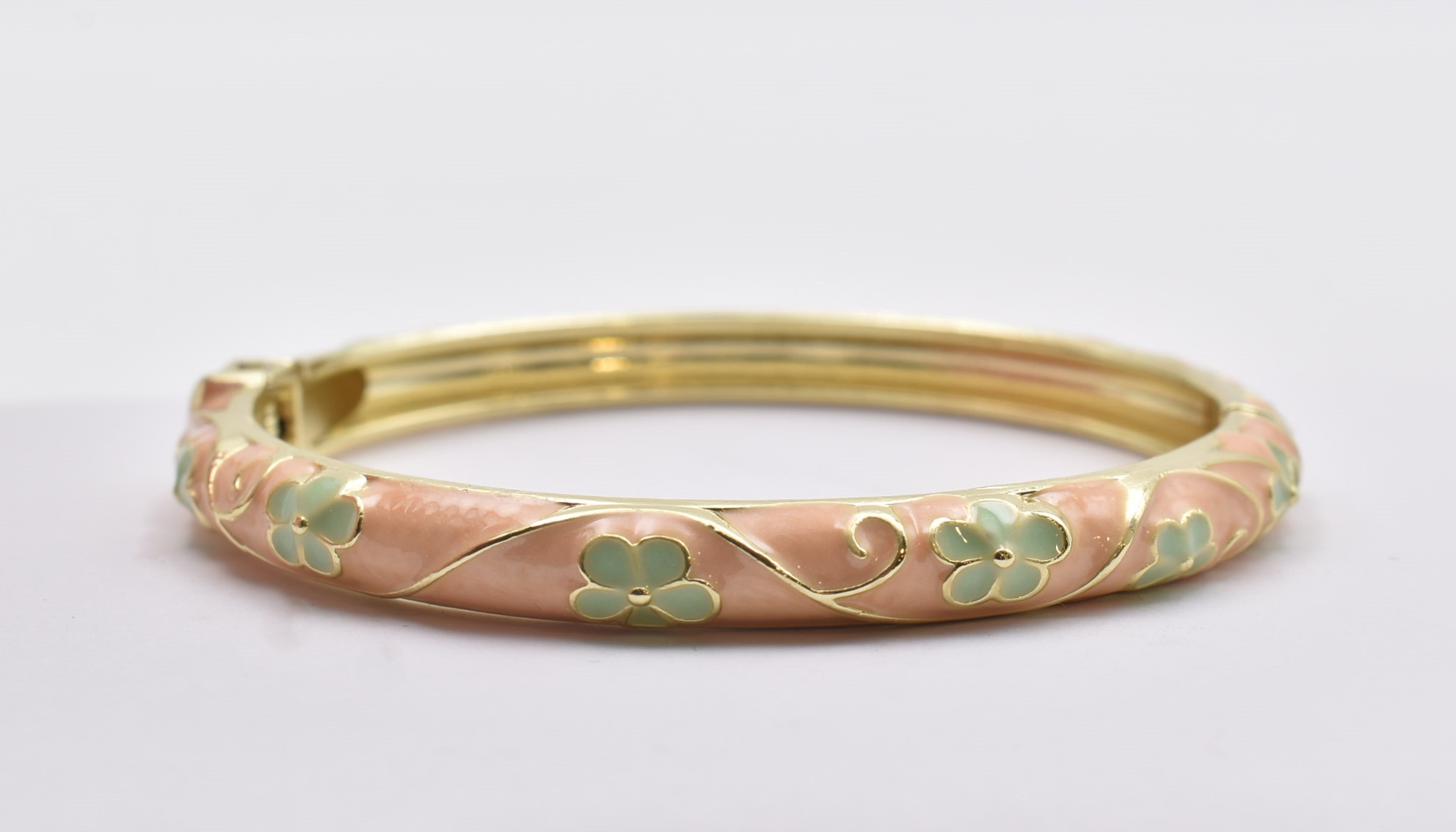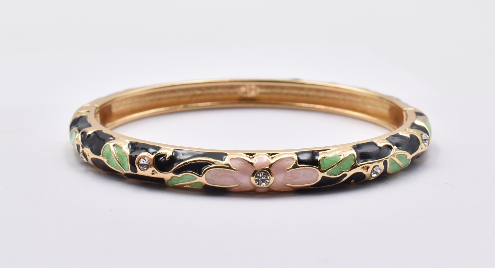 Βραχιόλι – Χειροπέδα με Ανάγλυφο Σμάλτο & Λουλούδια
