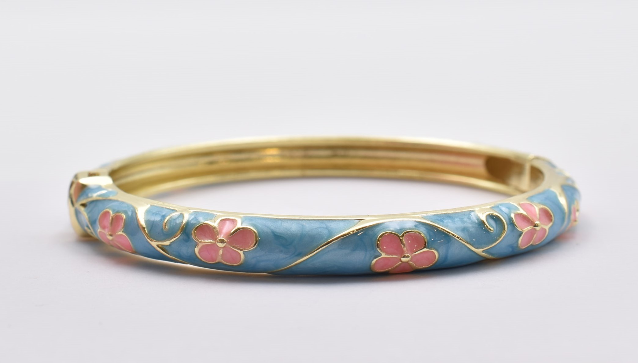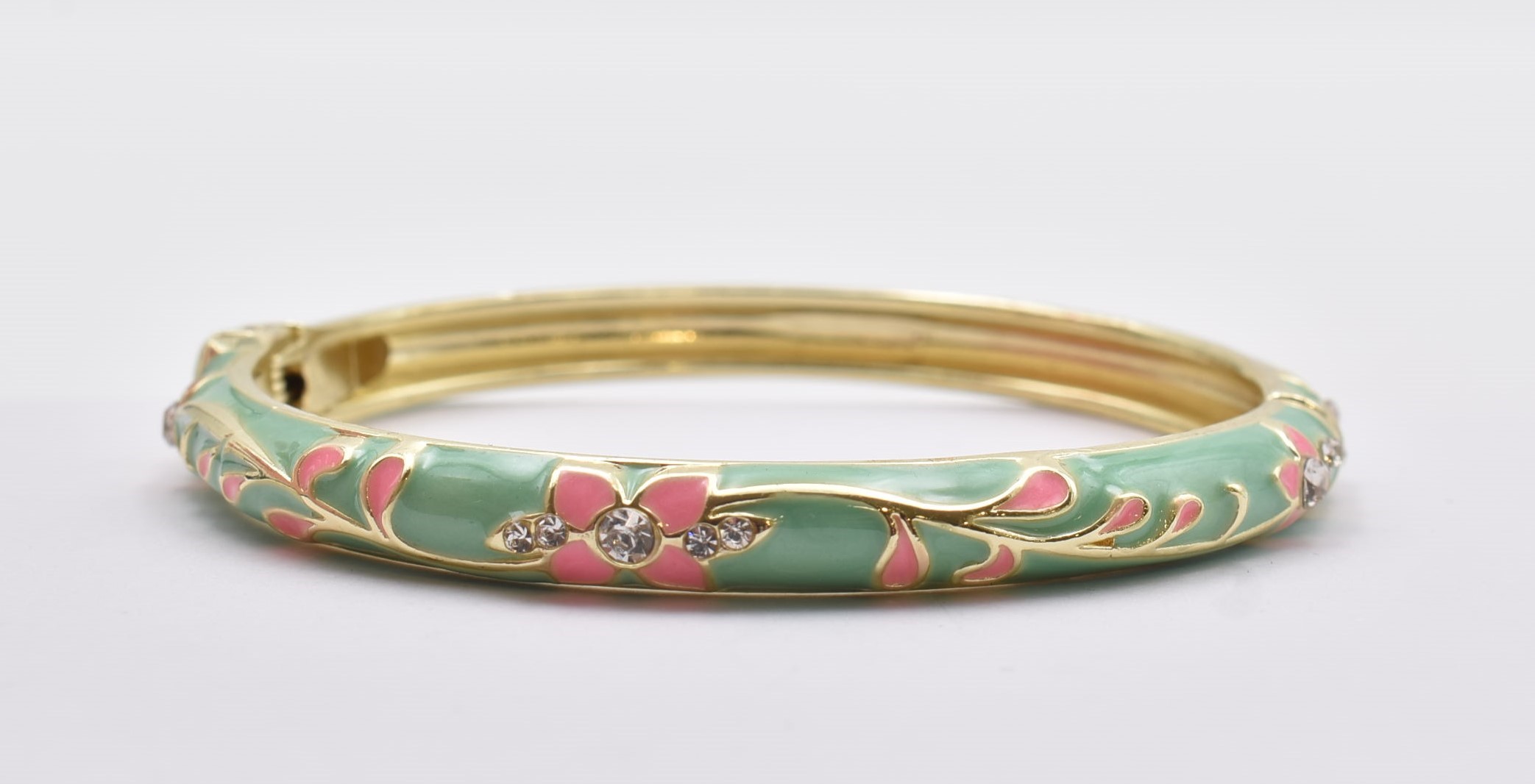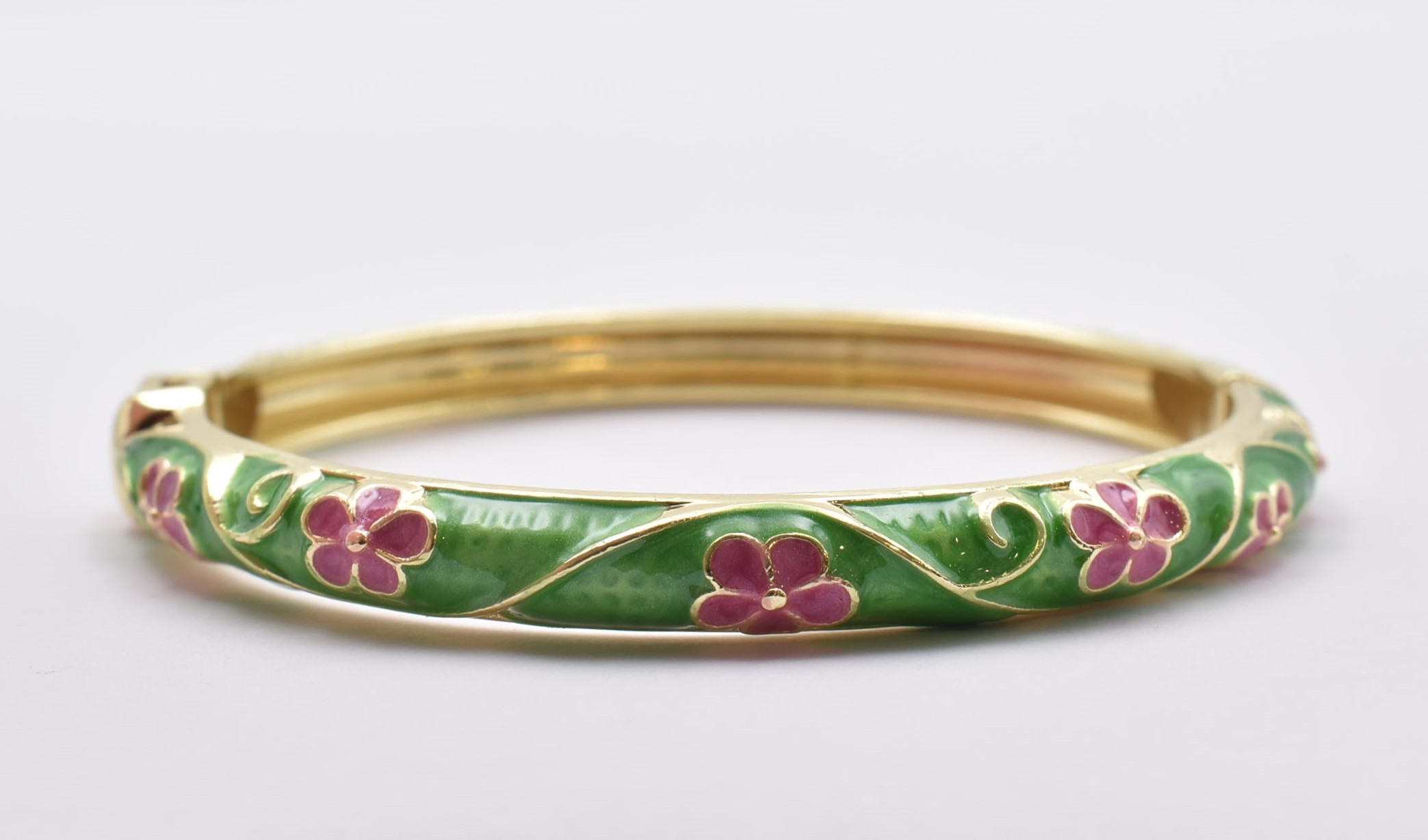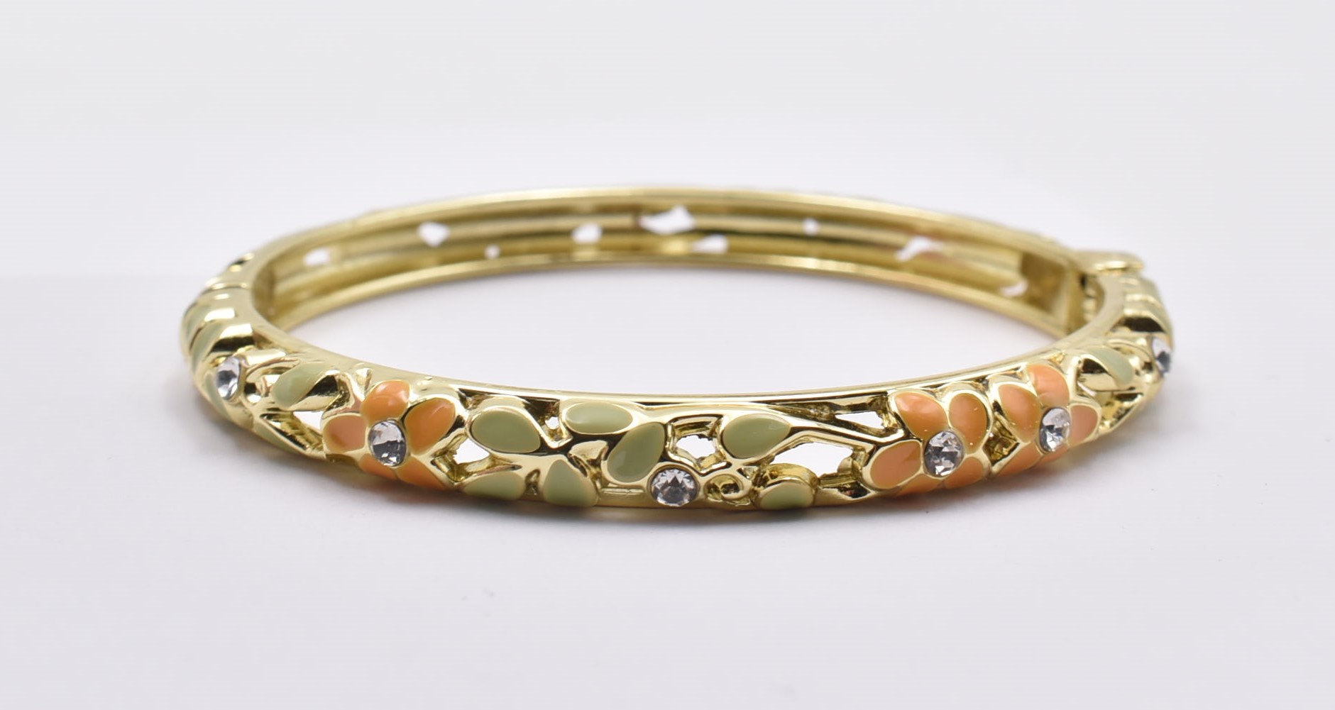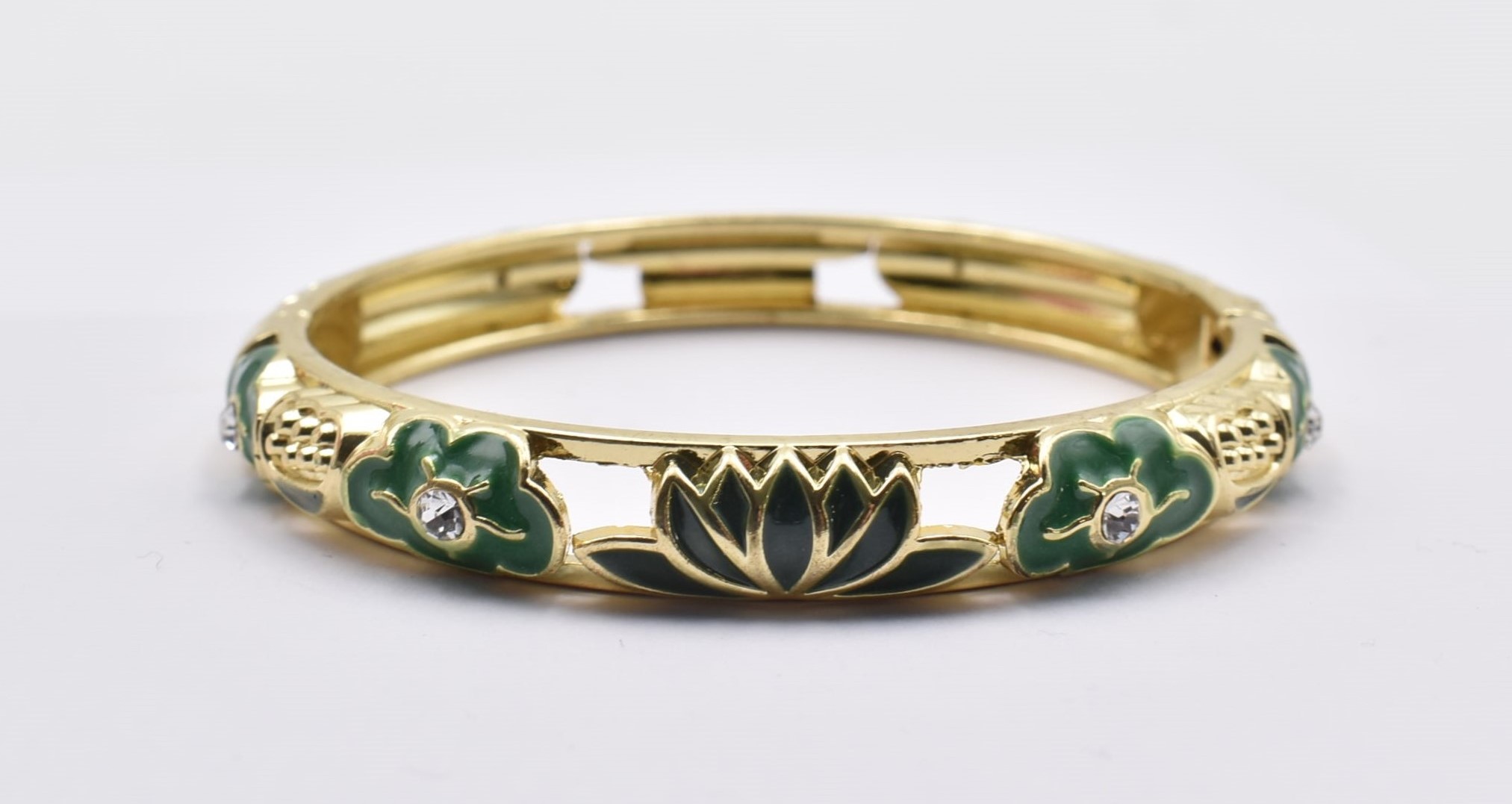 Βραχιόλι – Χειροπέδα με Ανάγλυφο Σμάλτο & Λουλούδια