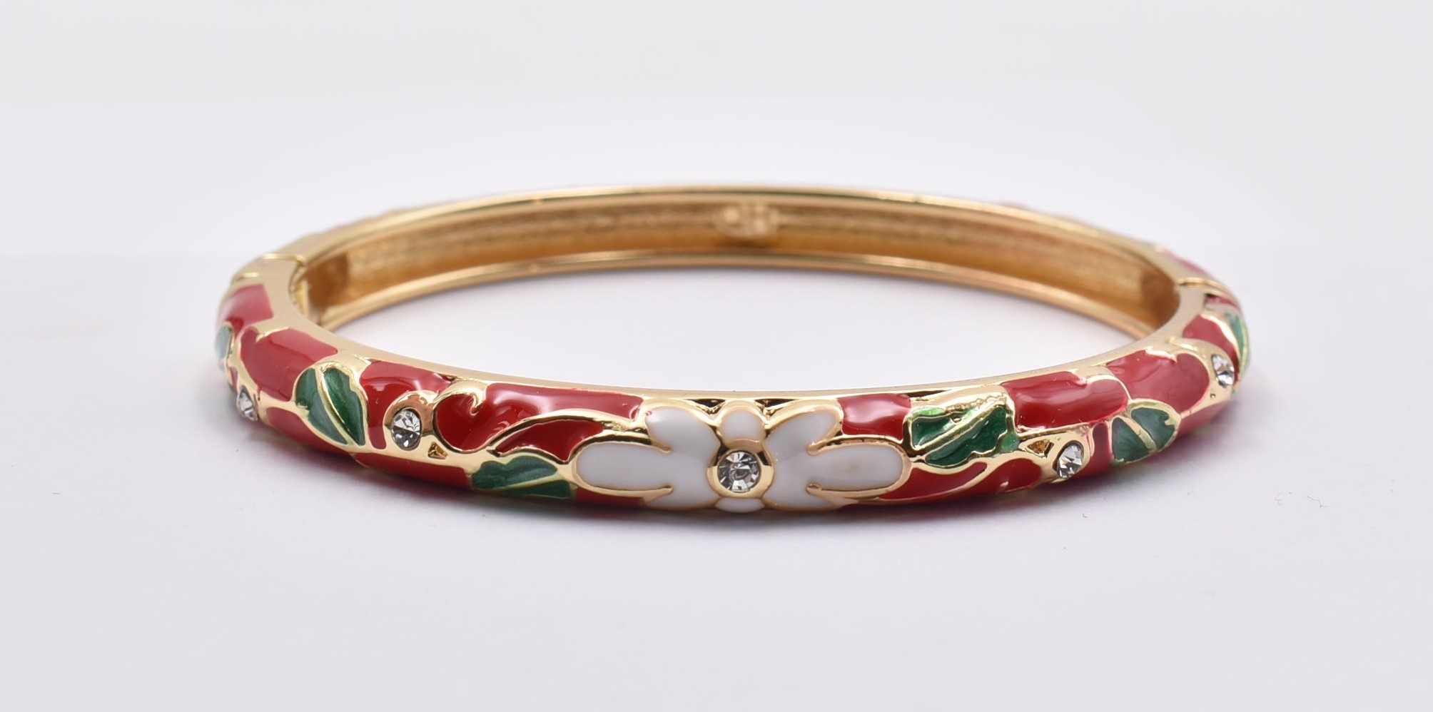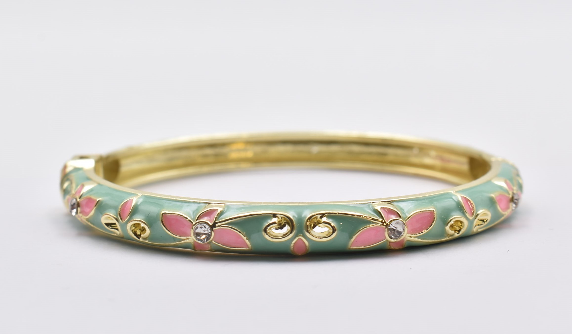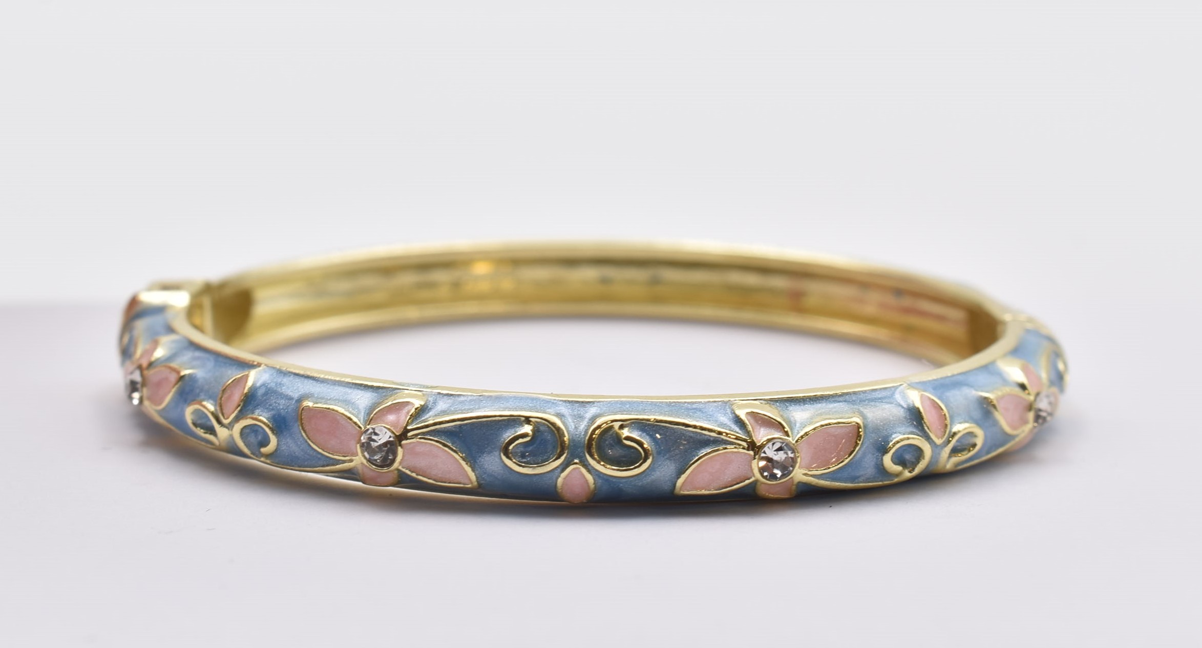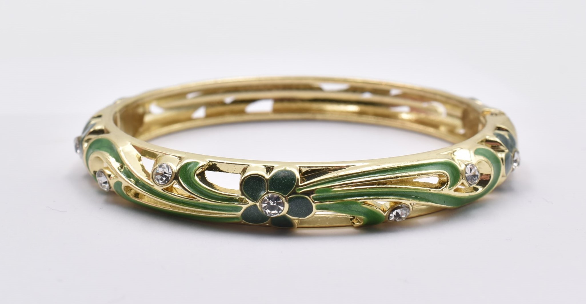 Βραχιόλι – Χειροπέδα με Ανάγλυφο Σμάλτο & Λουλούδια
