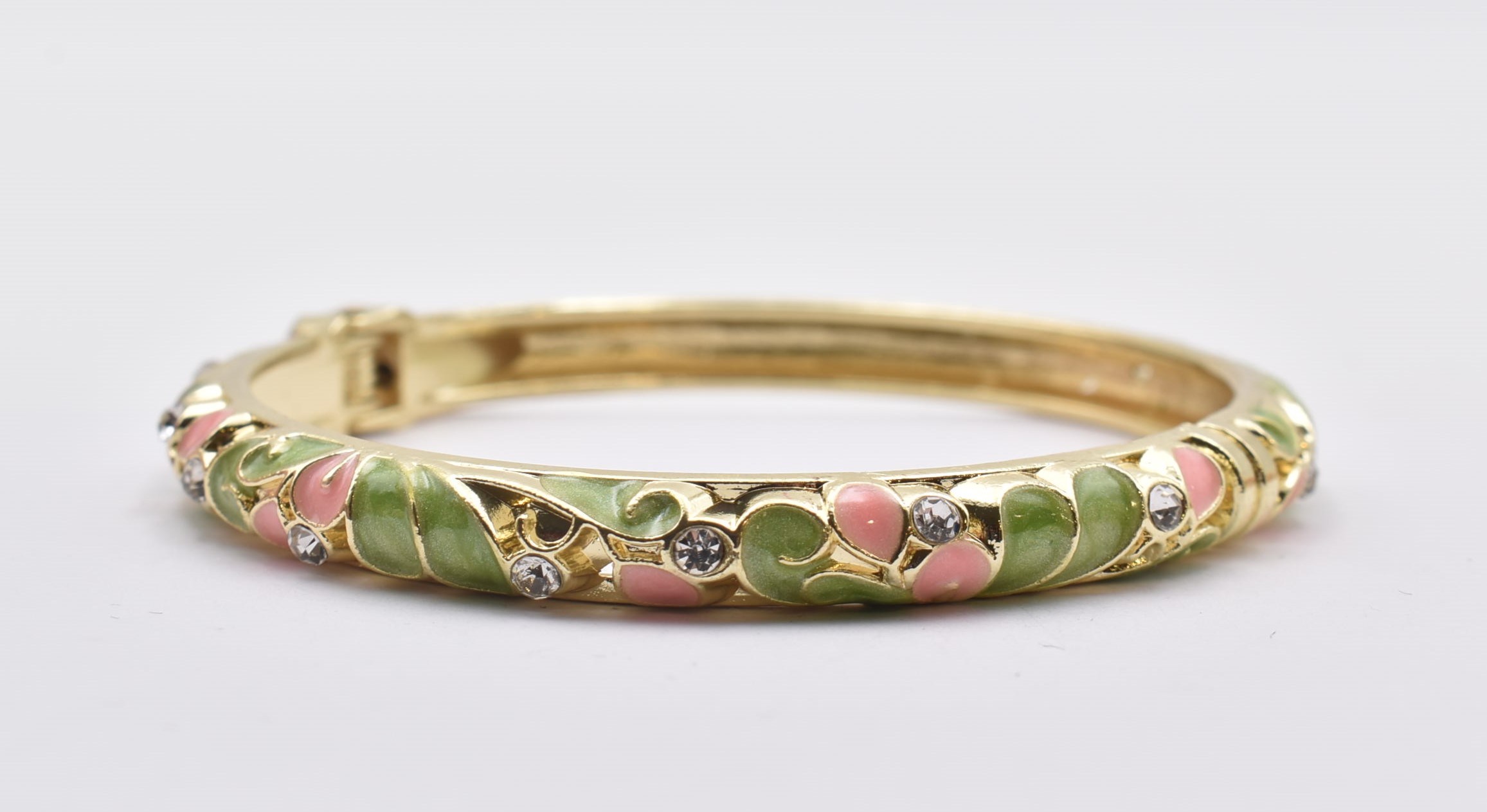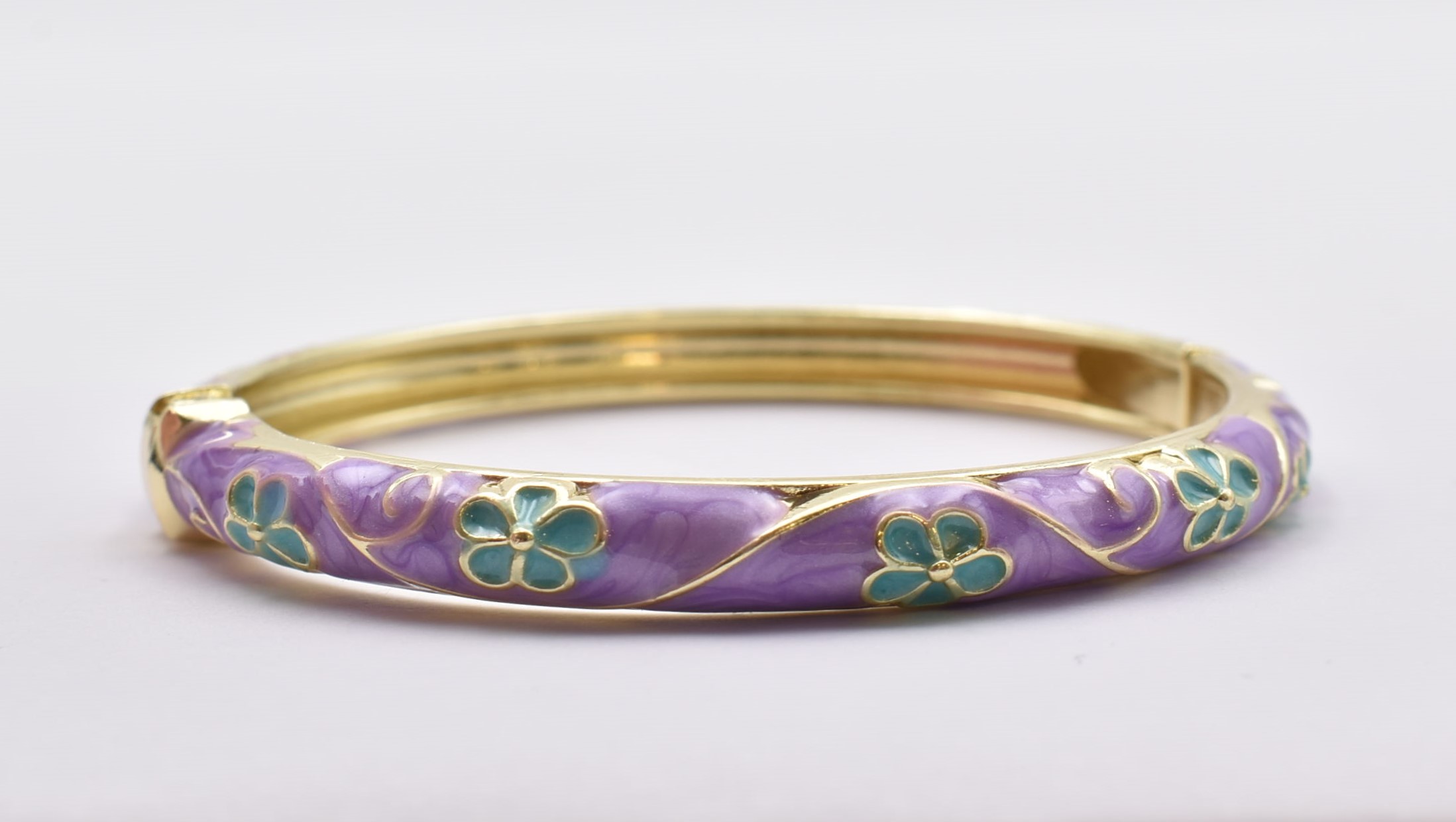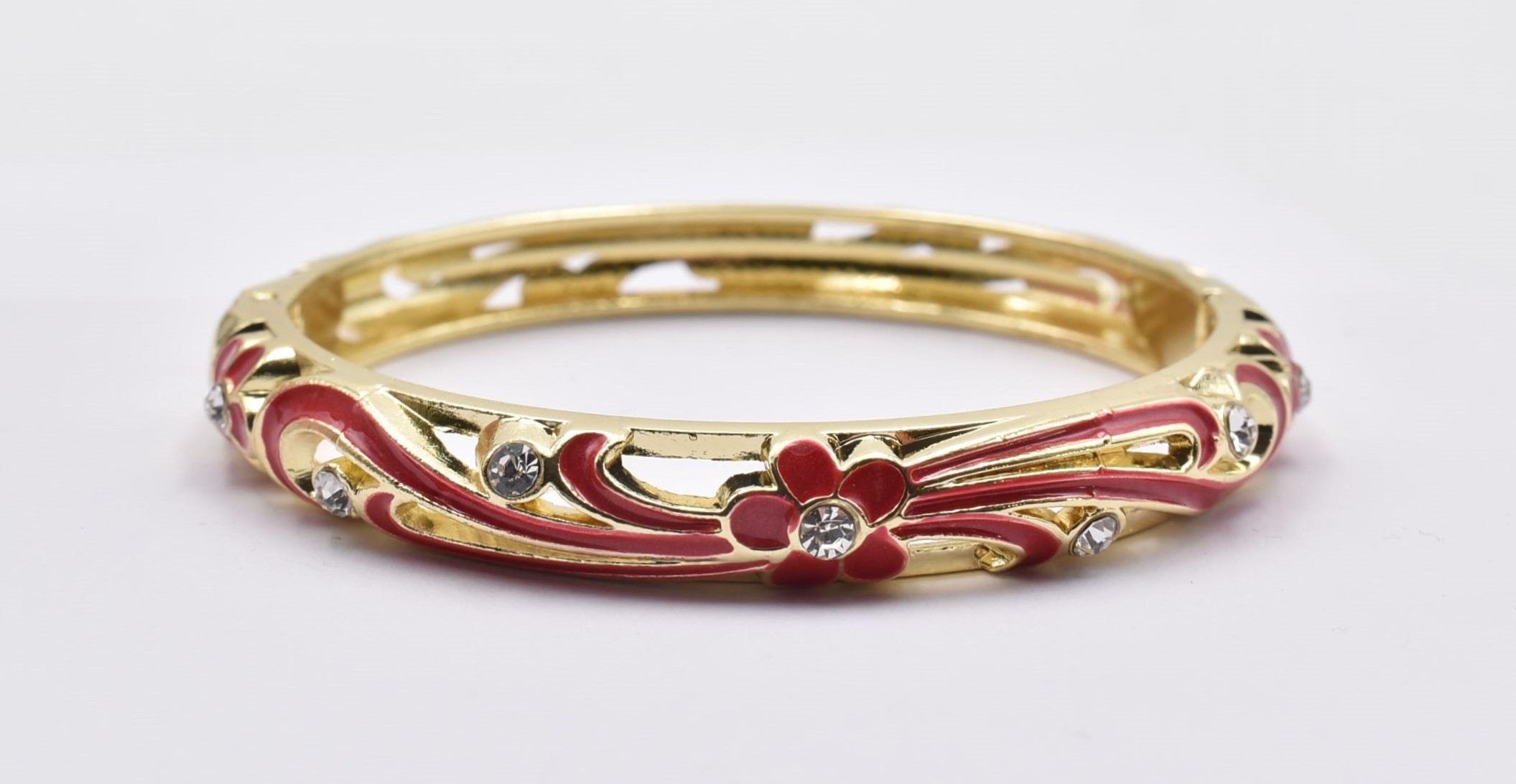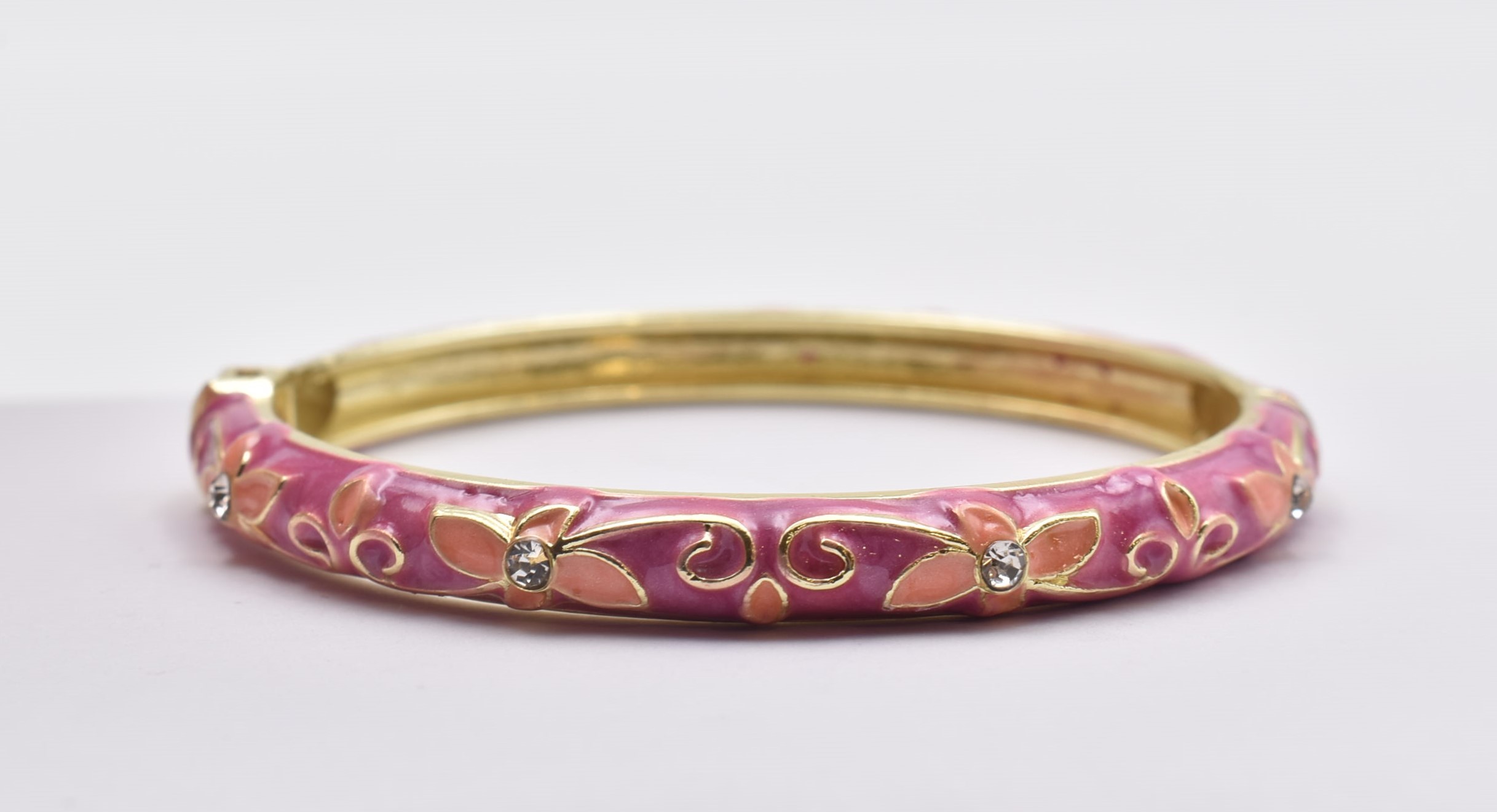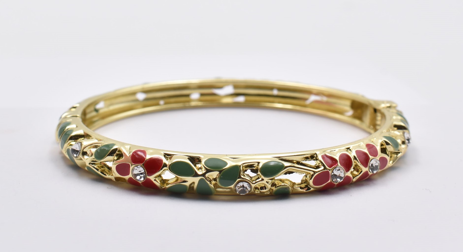 Βραχιόλι – Χειροπέδα με Ανάγλυφο Σμάλτο & Λουλούδια