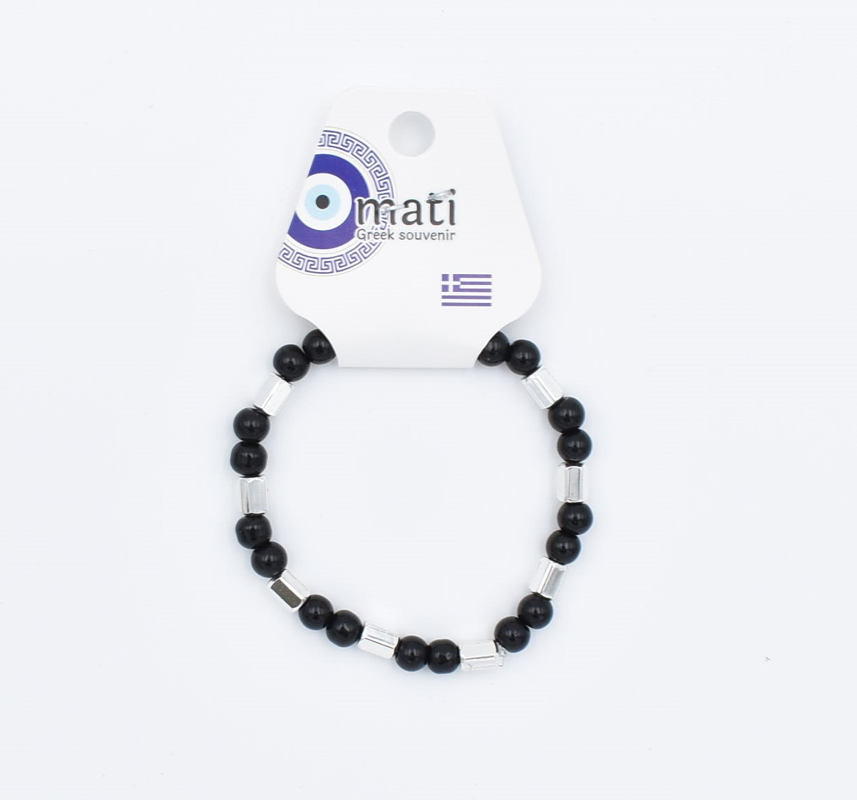 • Λαμπερές μαύρες χάντρες υψηλής ποιότητας • Προσεγμένο φινίρισμα •Μεταλλικά στοιχεία