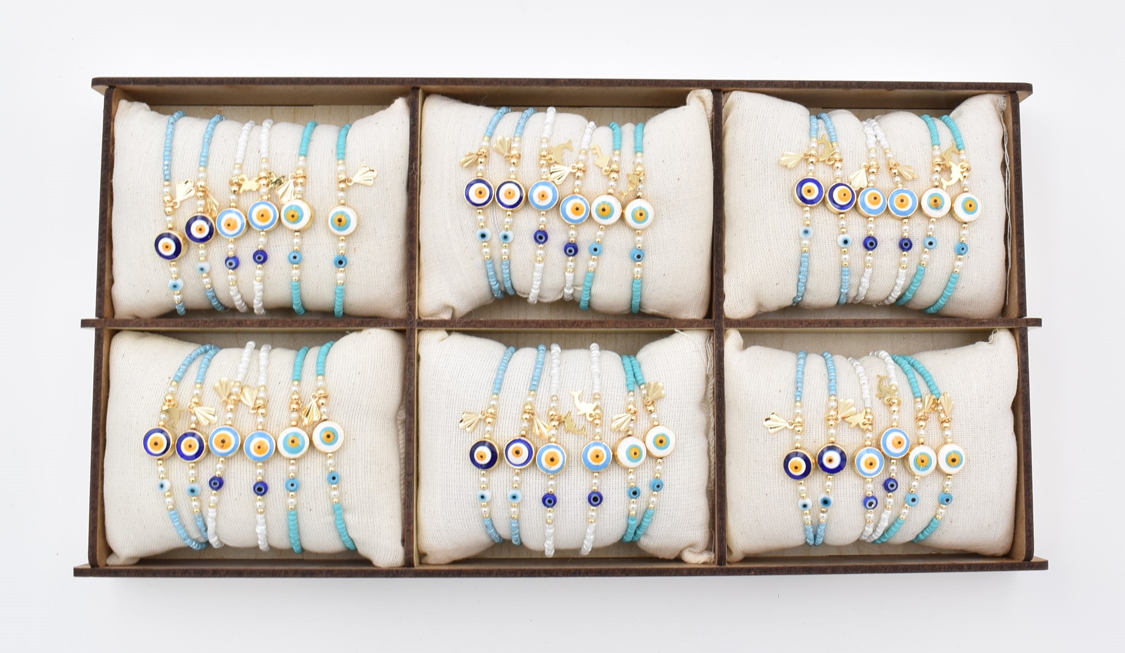 Βραχιόλι με Μάτι και με Άσπρες – Θαλασσί Χάντρες