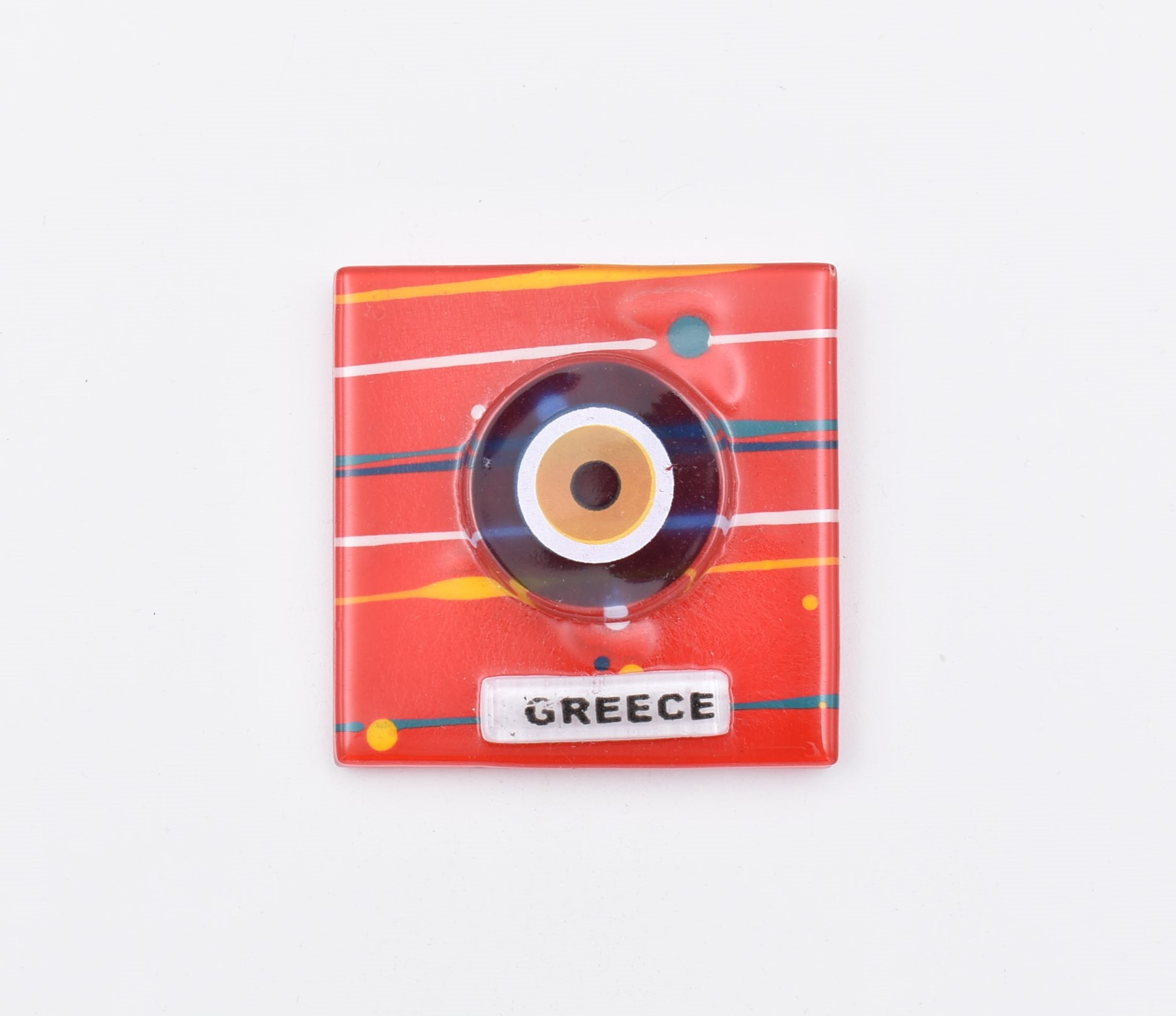 Μαγνήτης Τετράγωνος Μάτι Greece Φυσητό Γυαλί   5 cm *5 cm