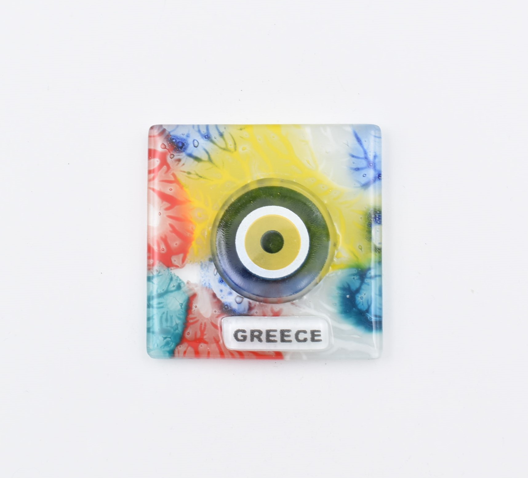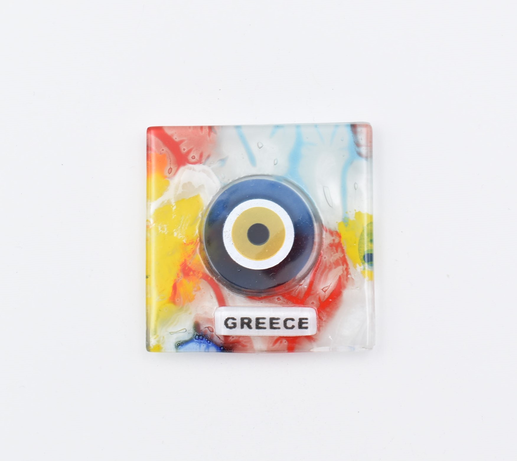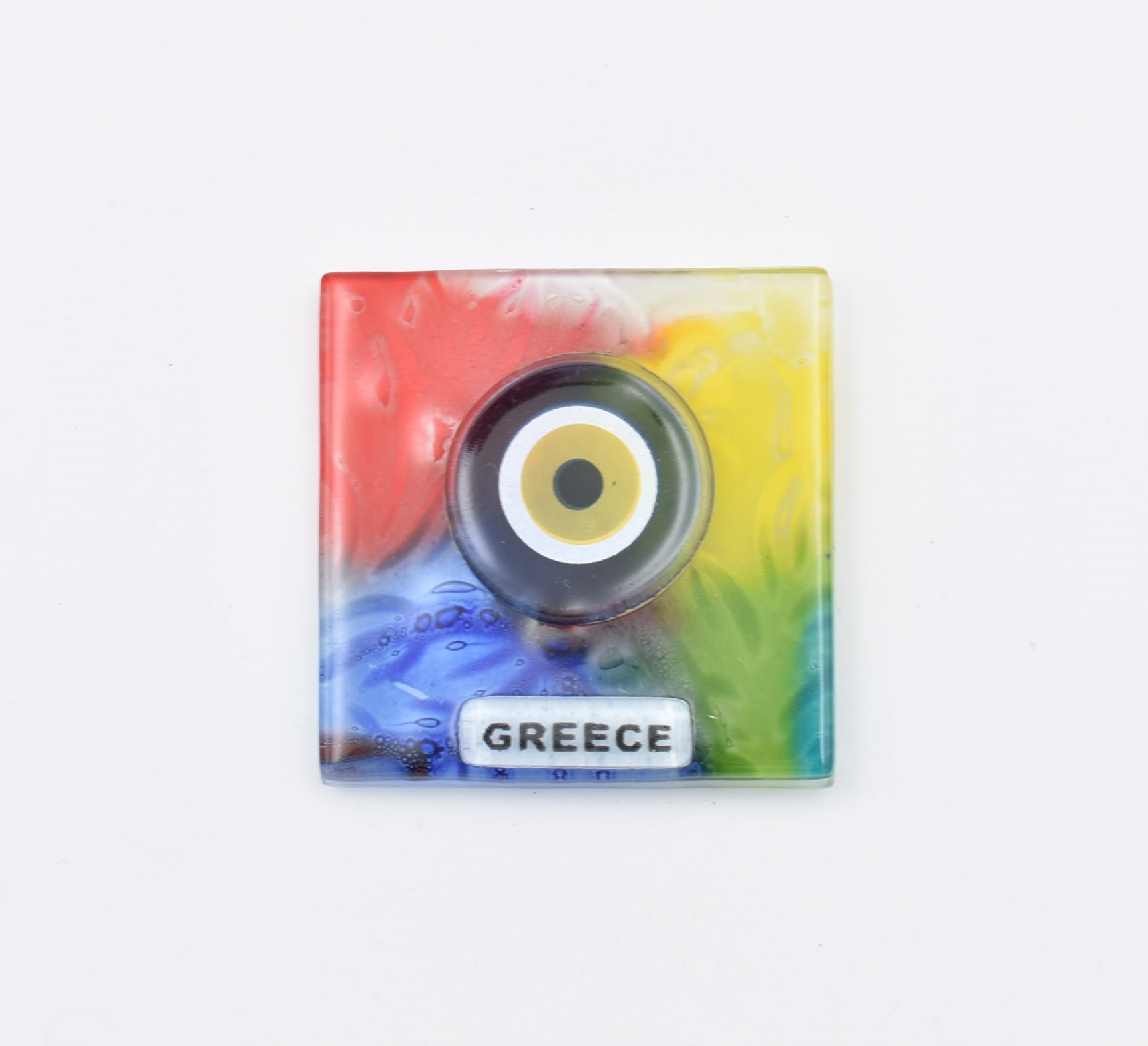 Μαγνήτης Τετράγωνος Μάτι Greece Φυσητό Γυαλί