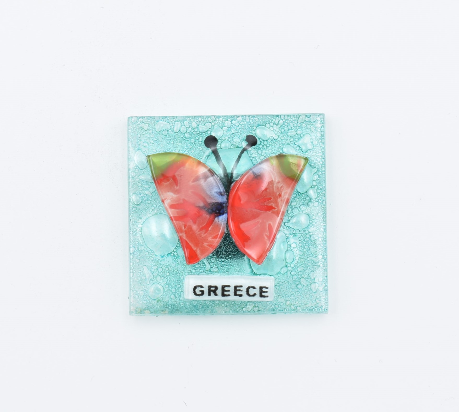 Μαγνήτης Τετράγωνος Φυσητό Γυαλί  Γατάκι, Καραβάκι, Ψαράκι, Πασχαλίτσα , Πεταλούδα Διακοσμητικά μοτίβα 5 cm *5 cm