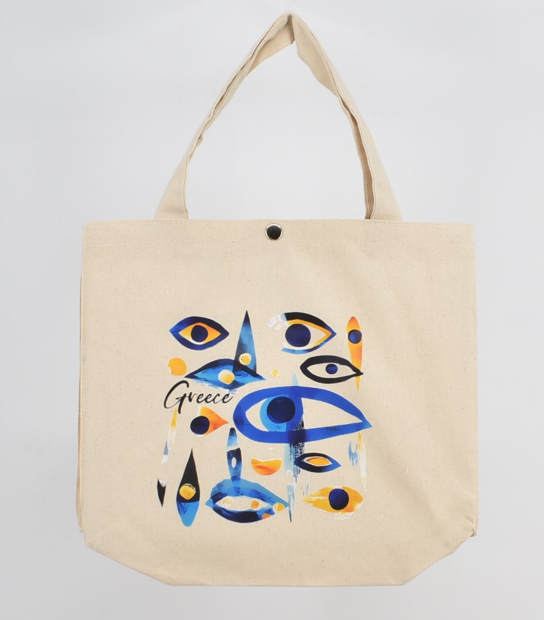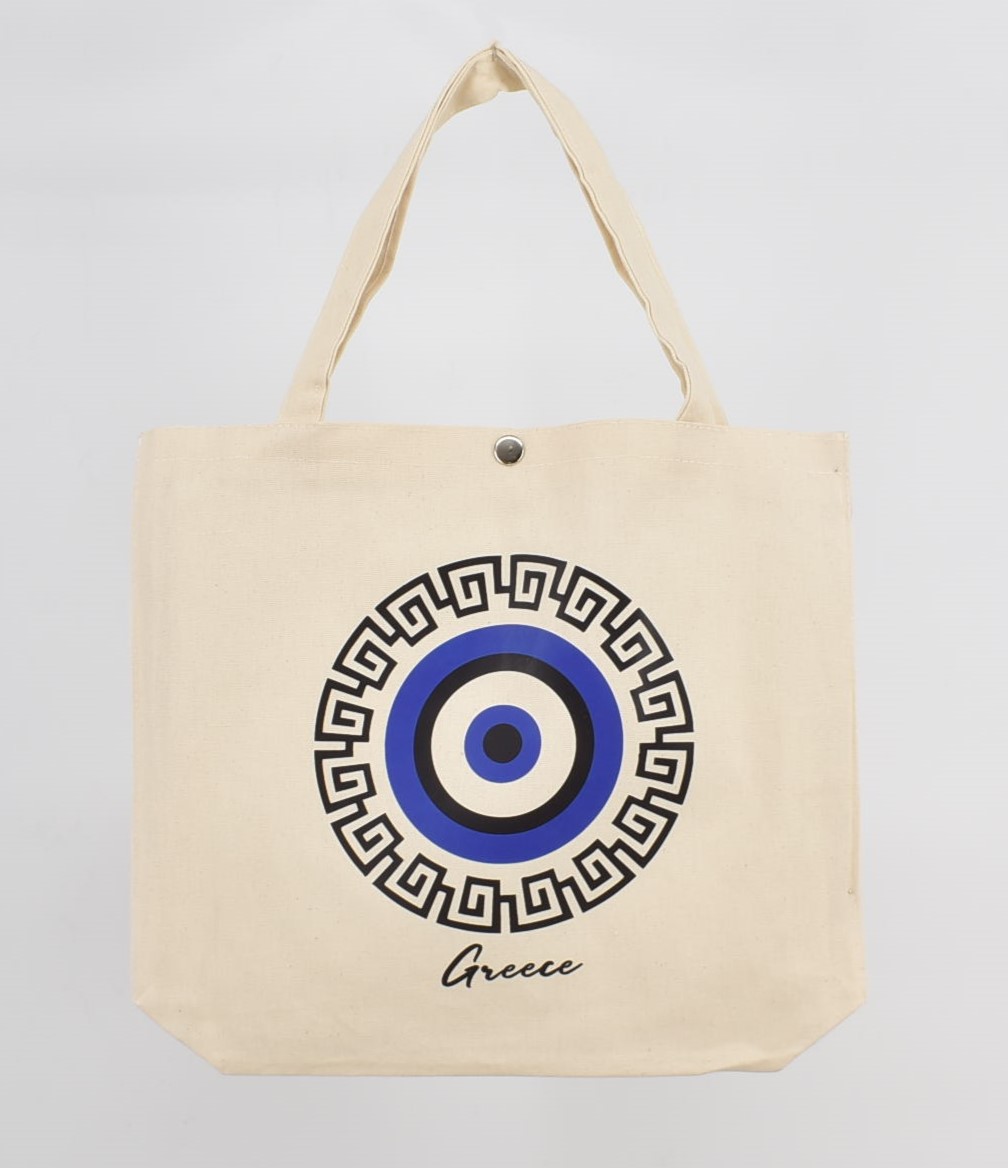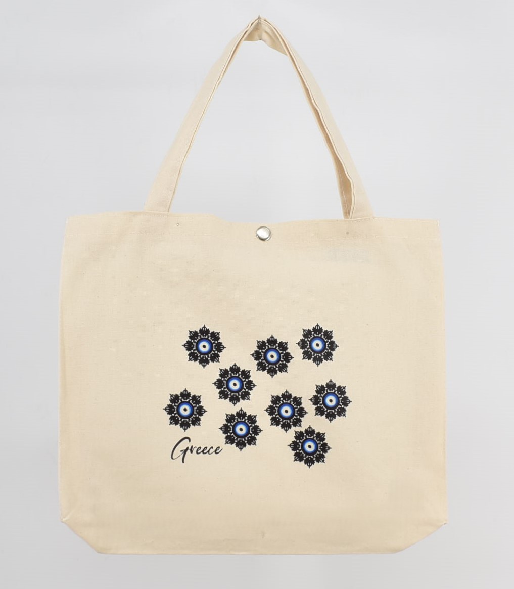 Τσάντα Καμβά με Τύπωμα “Μάτι , Αρχαίος Ναός , Μαίανδρος, Λουλούδι” 38 cm *33 cm