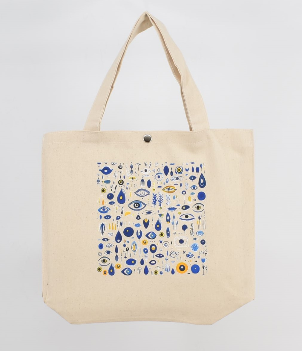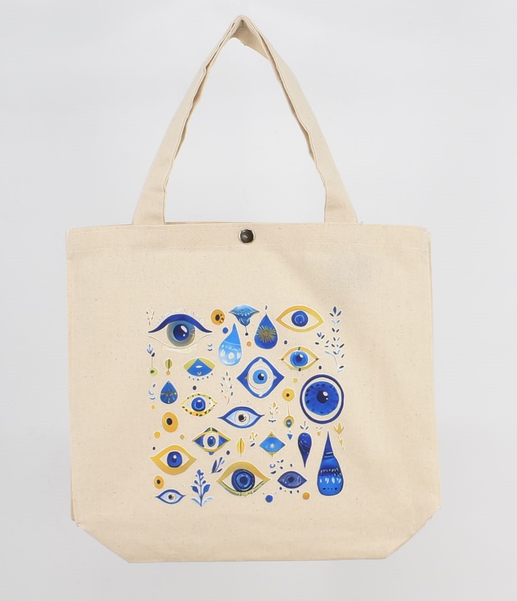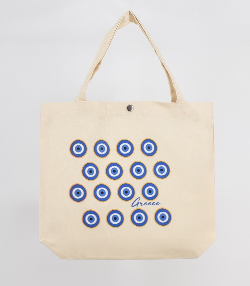 Τσάντα Καμβά με Τύπωμα “Μάτι , Αρχαίος Ναός , Μαίανδρος, Λουλούδι” 38 cm *33 cm