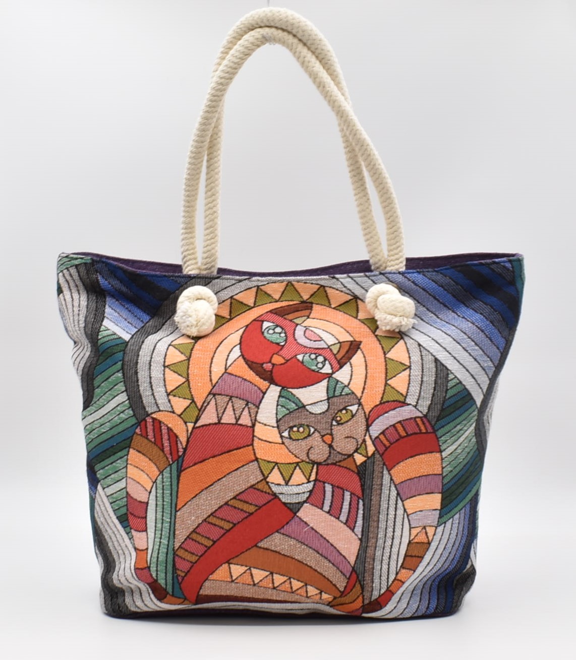 Τσάντα Ώμου – Παραλίας Υφαντή Γάτα 35 x 50 cm