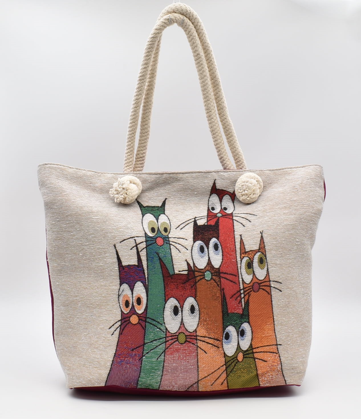 Τσάντα Ώμου – Παραλίας Υφαντή Γάτα 35 x 50 cm