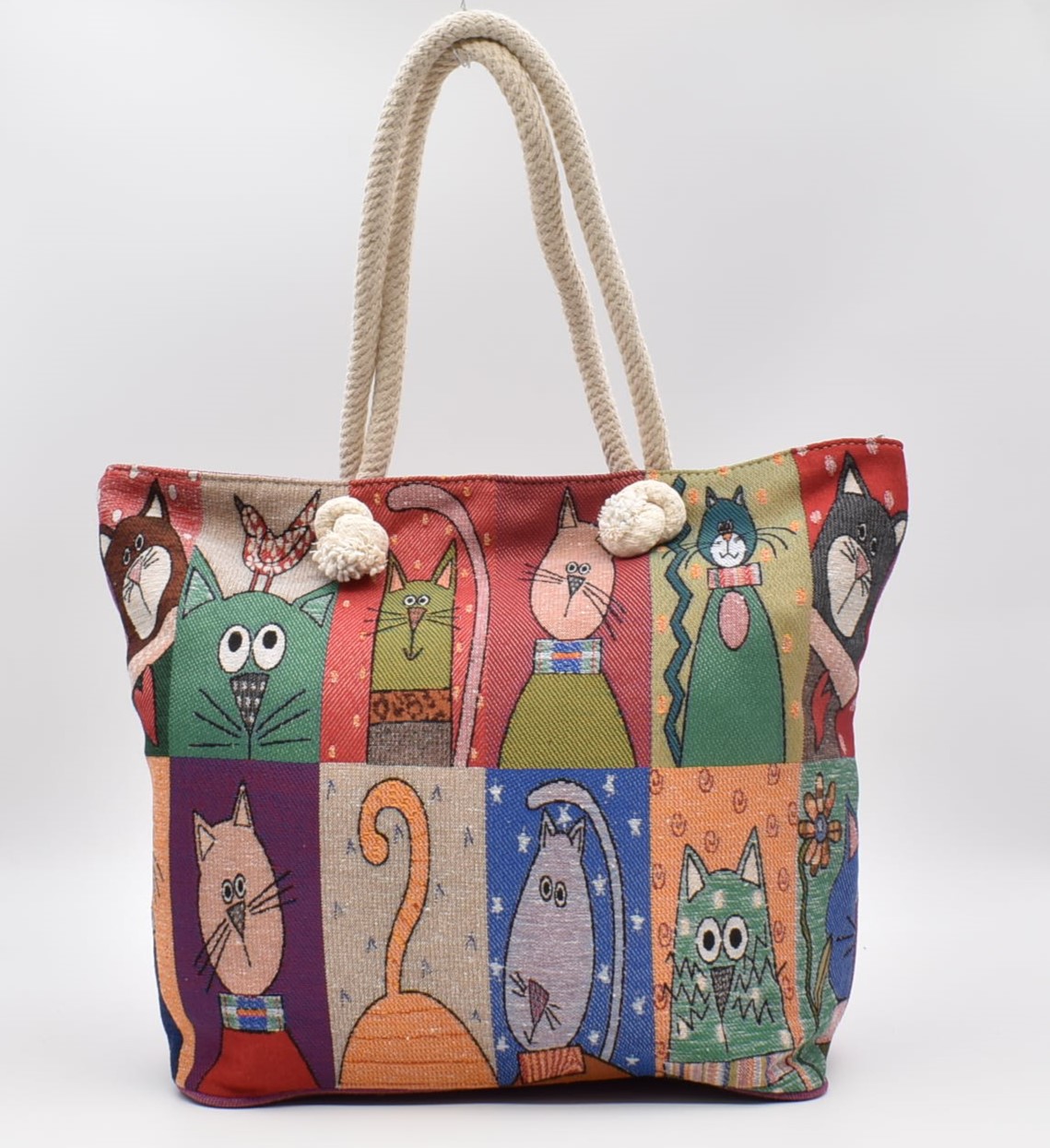 Τσάντα Ώμου – Παραλίας Υφαντή Γάτα 35 x 50 cm