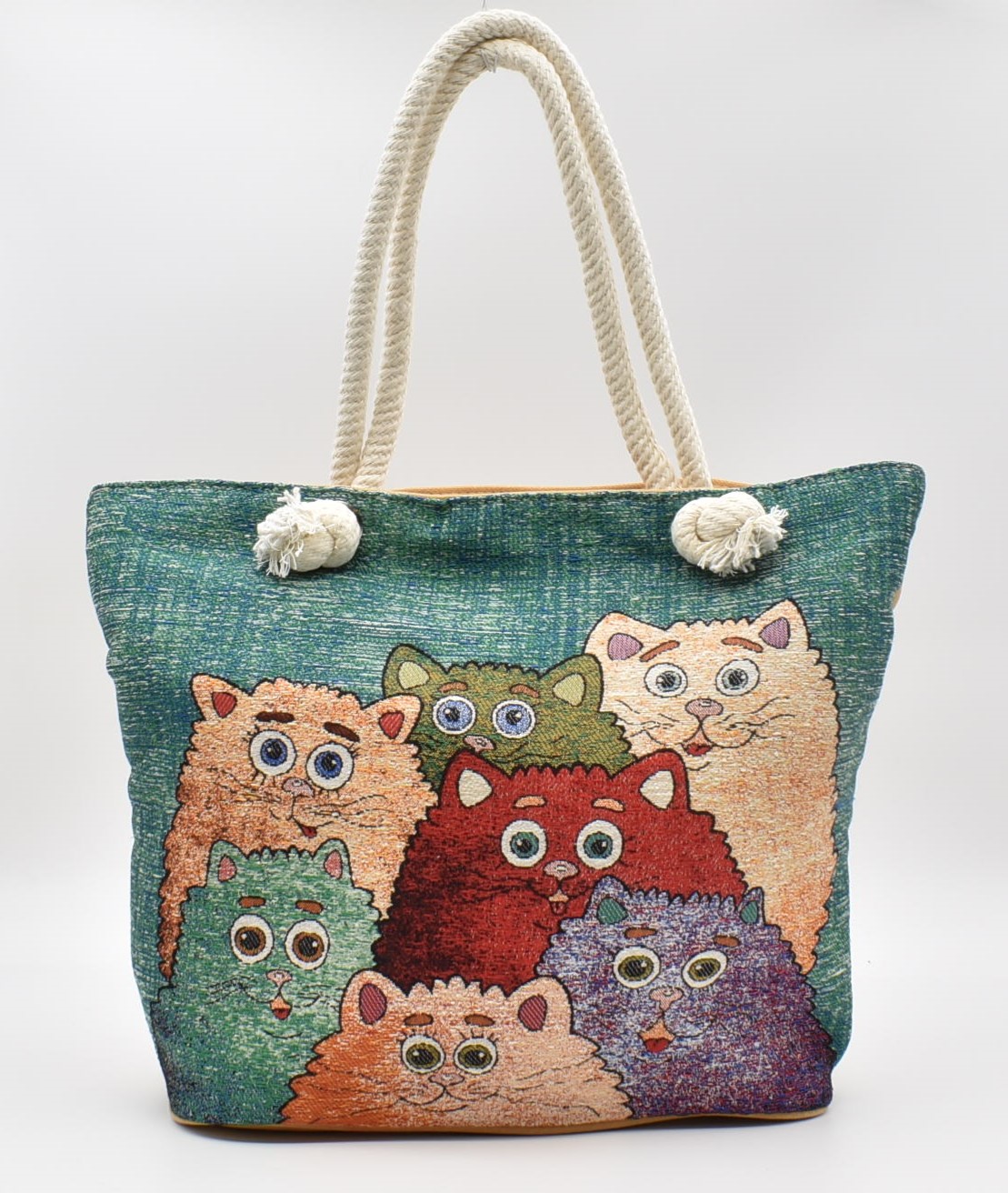 Τσάντα Ώμου – Παραλίας Υφαντή Γάτα 35 x 50 cm
