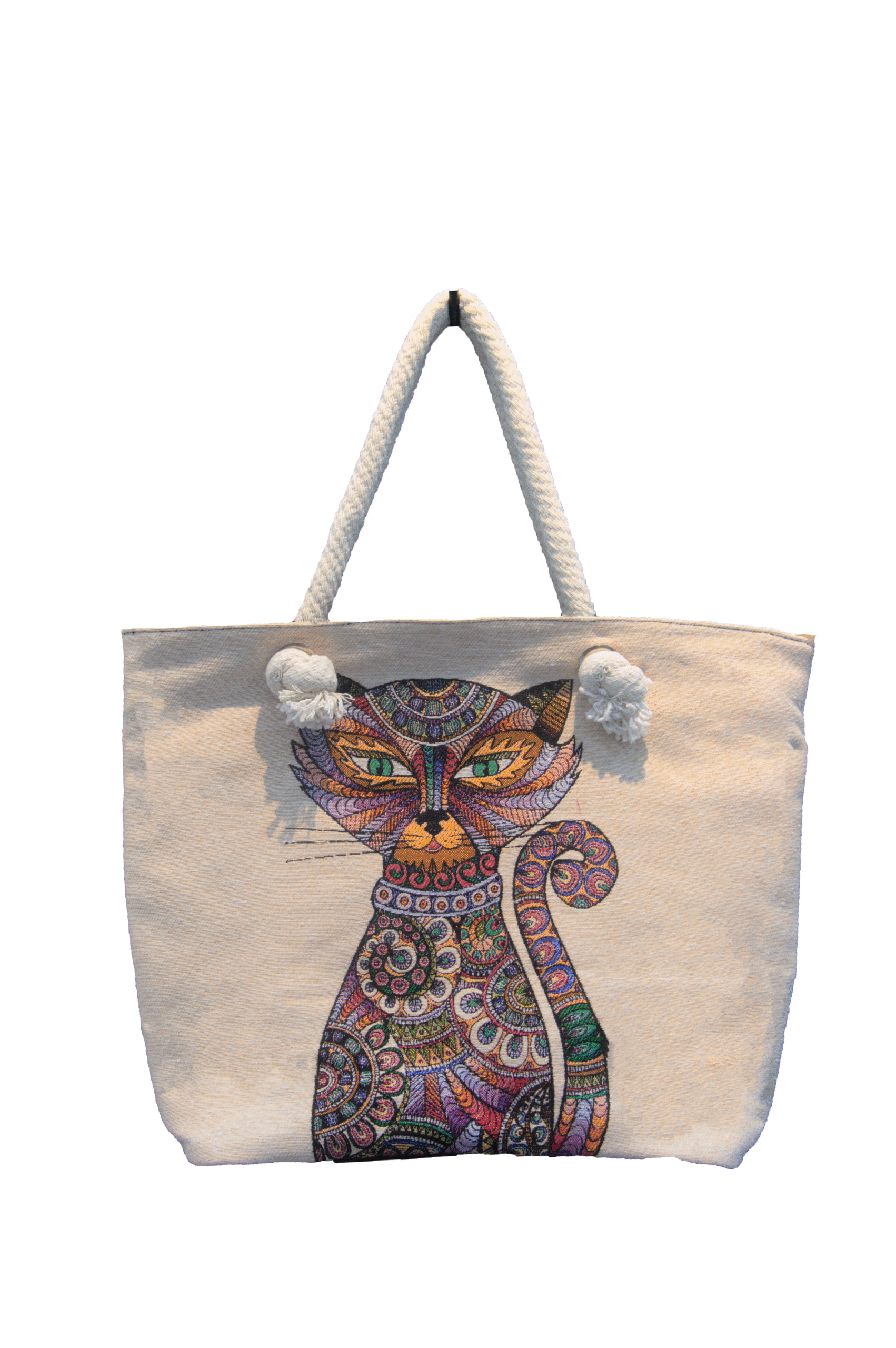 Τσάντα Ώμου – Παραλίας Υφαντή Γάτα 35 x 50 cm