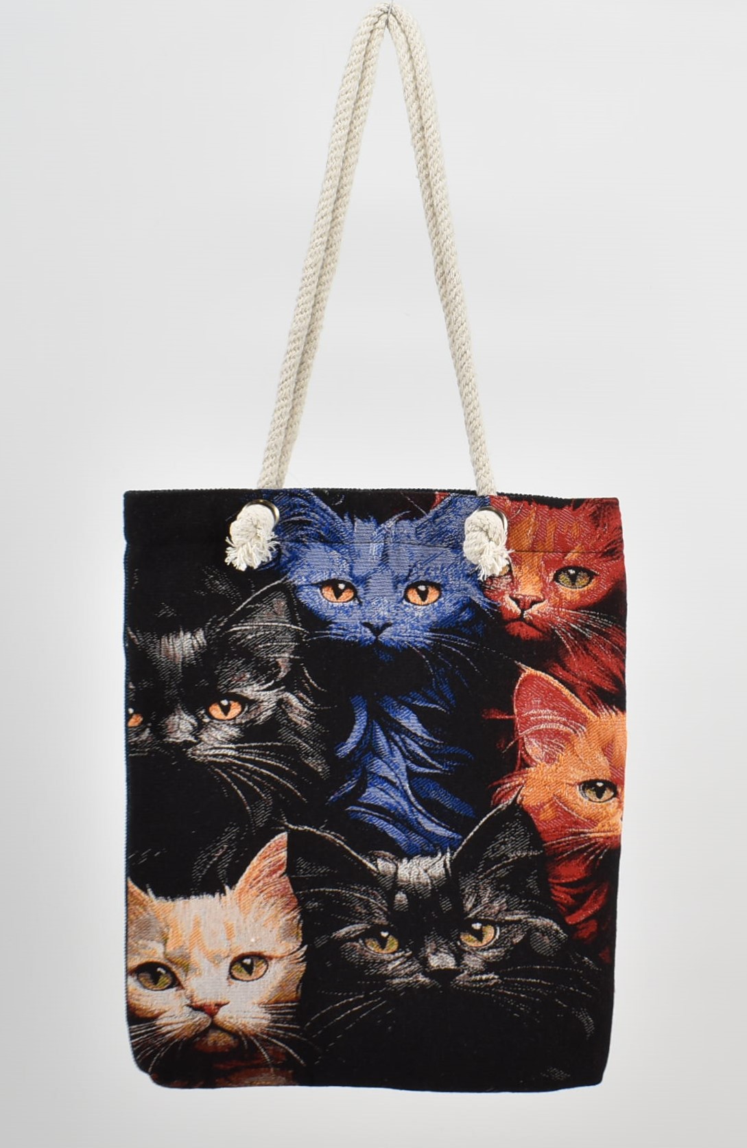 Τσάντα Ώμου Υφαντή Γάτα 32 x 41 cm