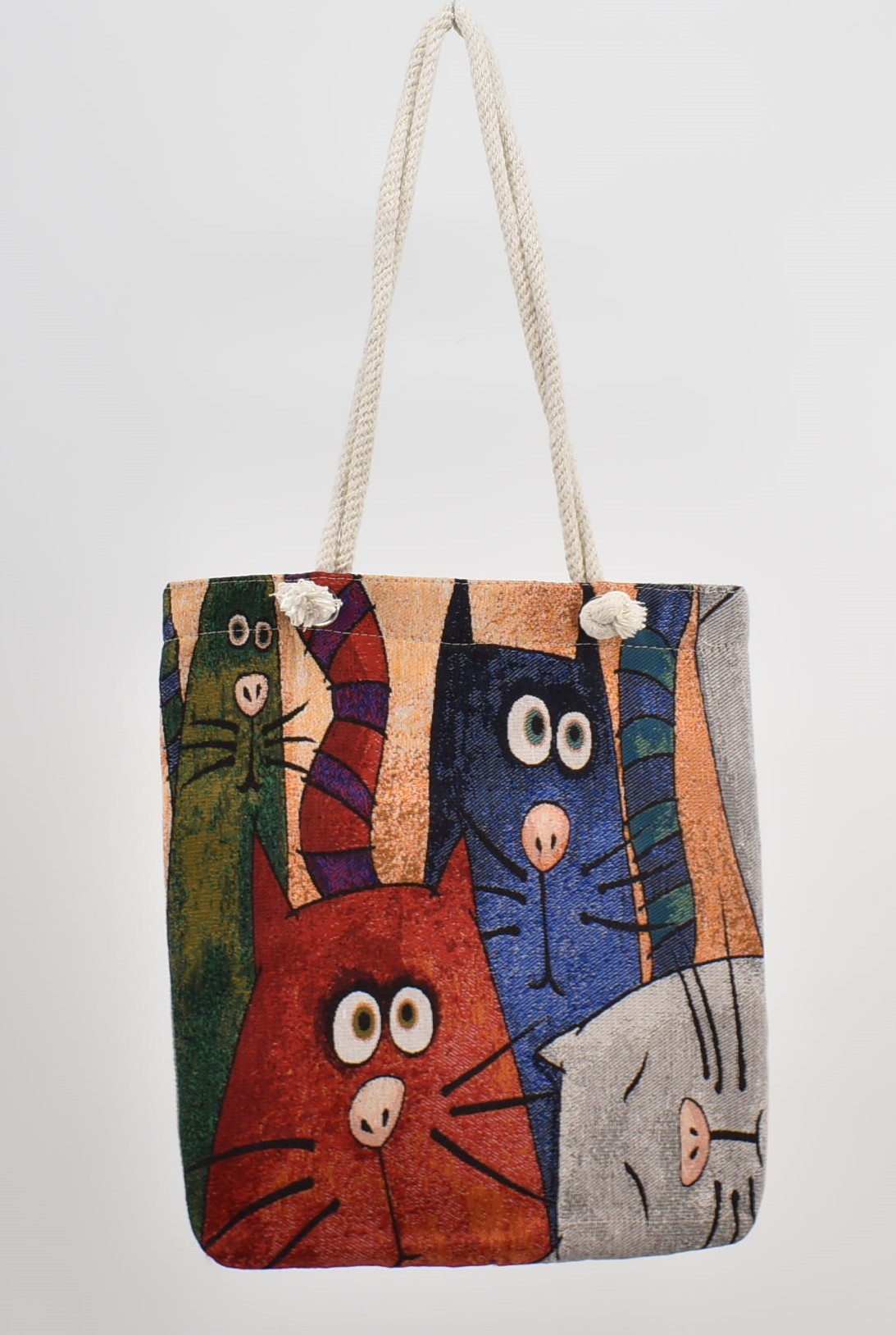 Τσάντα Ώμου Υφαντή Γάτα 32 x 41 cm