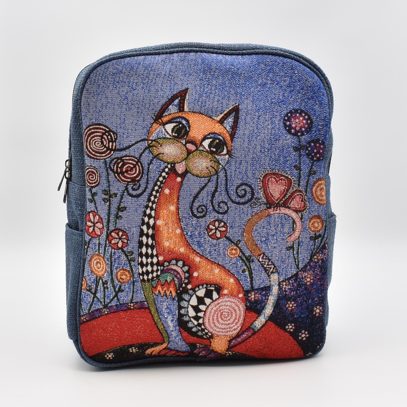 Τσάντα Πλάτης Υφαντή με Γάτα