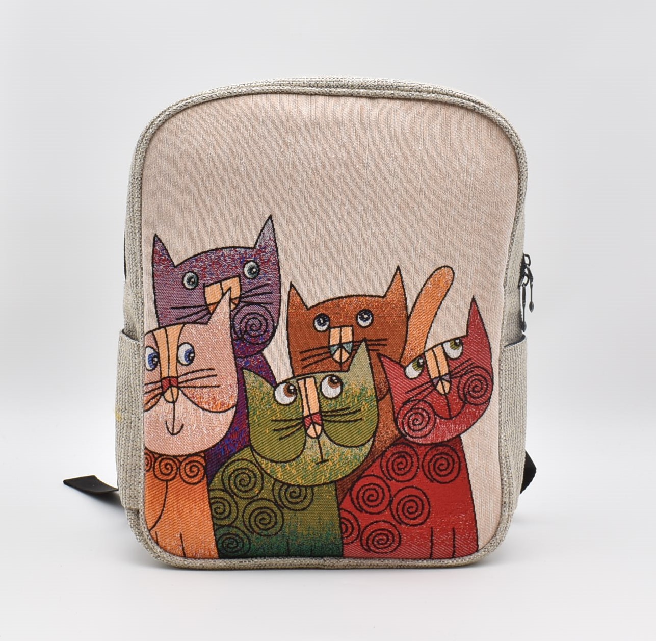 Τσάντα Πλάτης Υφαντή με Γάτες
