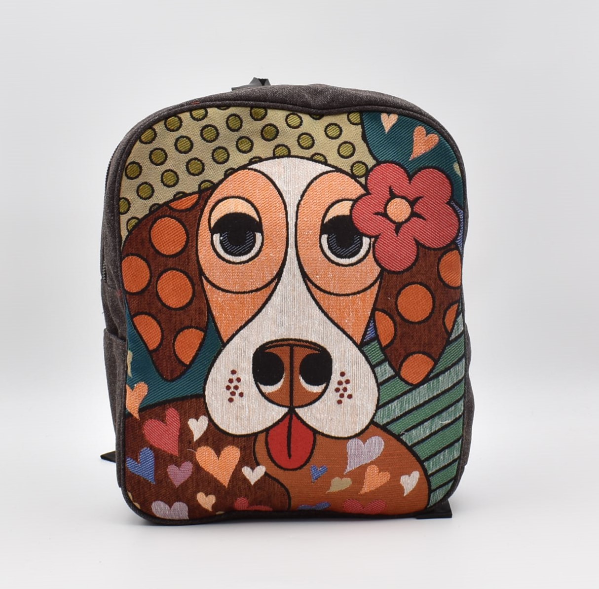 Τσάντα Πλάτης Υφαντή με Σκύλο