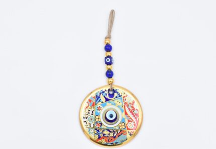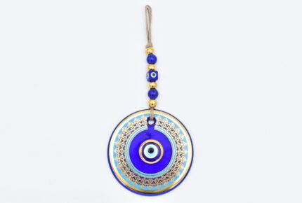 Κρεμαστό Γυάλινο Μάτι με Χρυσή Ρίγα και Κεντρική Χάντρα