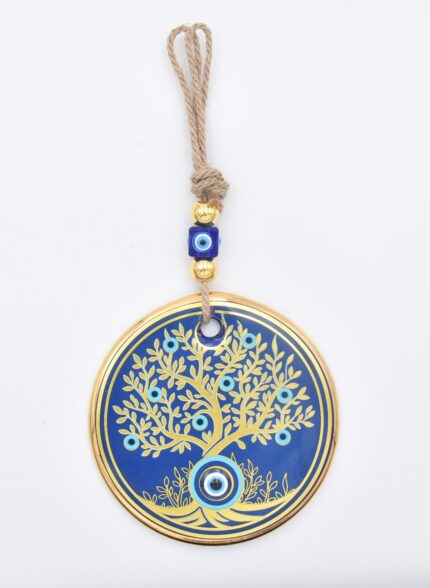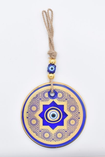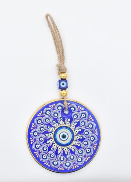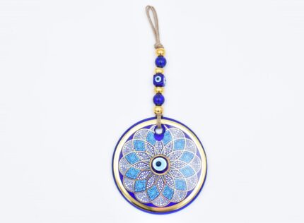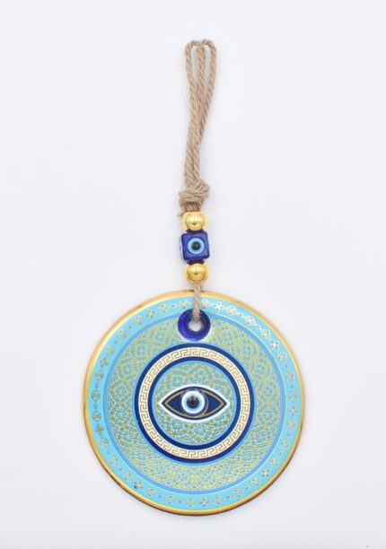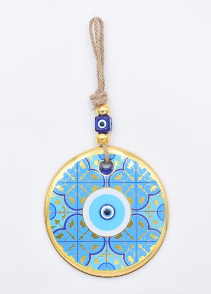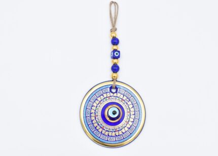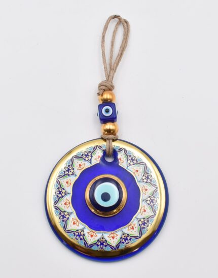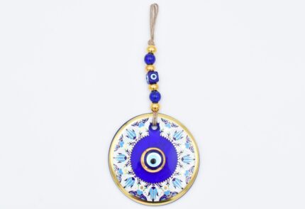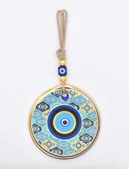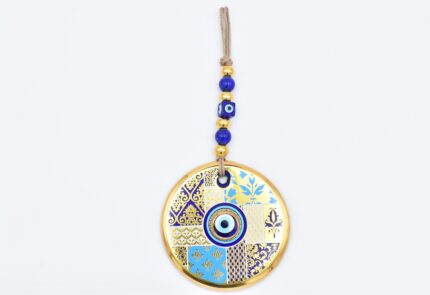 Κρεμαστό Γυάλινο Μάτι με Χρυσή Ρίγα και Κεντρική Χάντρα