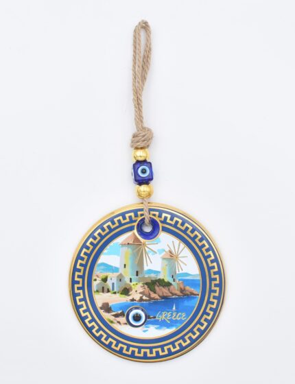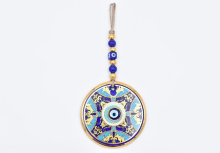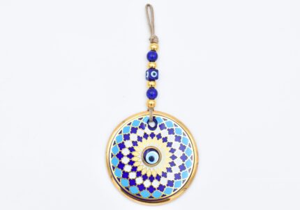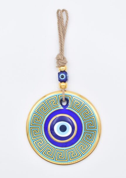 Κρεμαστό Γυάλινο Μάτι Μαίανδρος με Χρυσή Ρίγα και Κεντρική Χάντρα